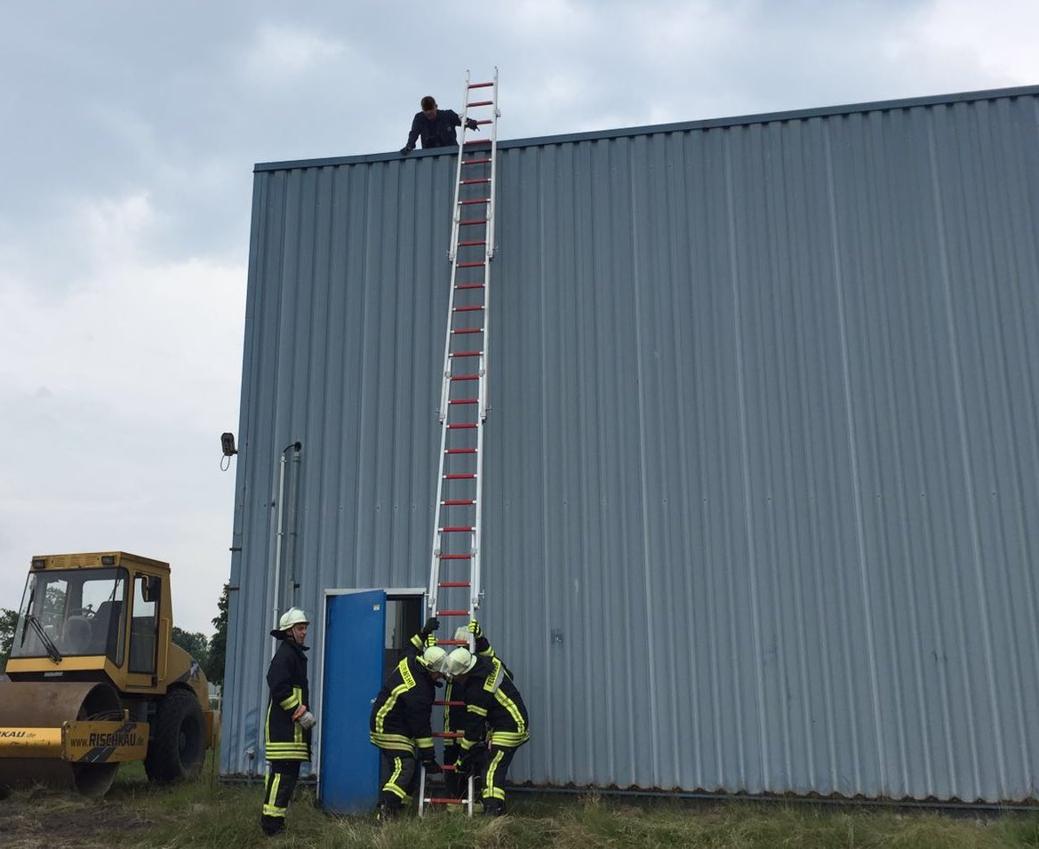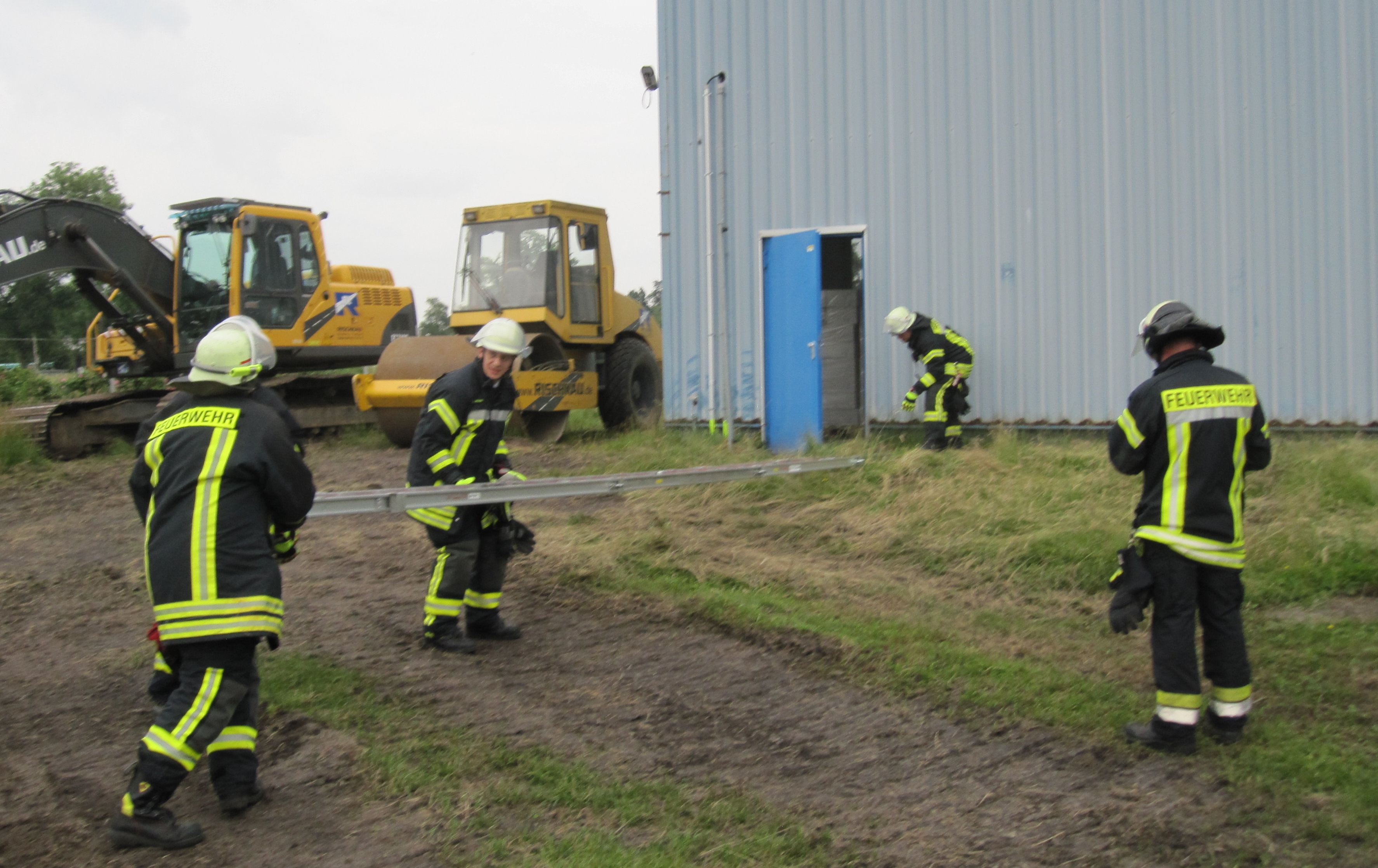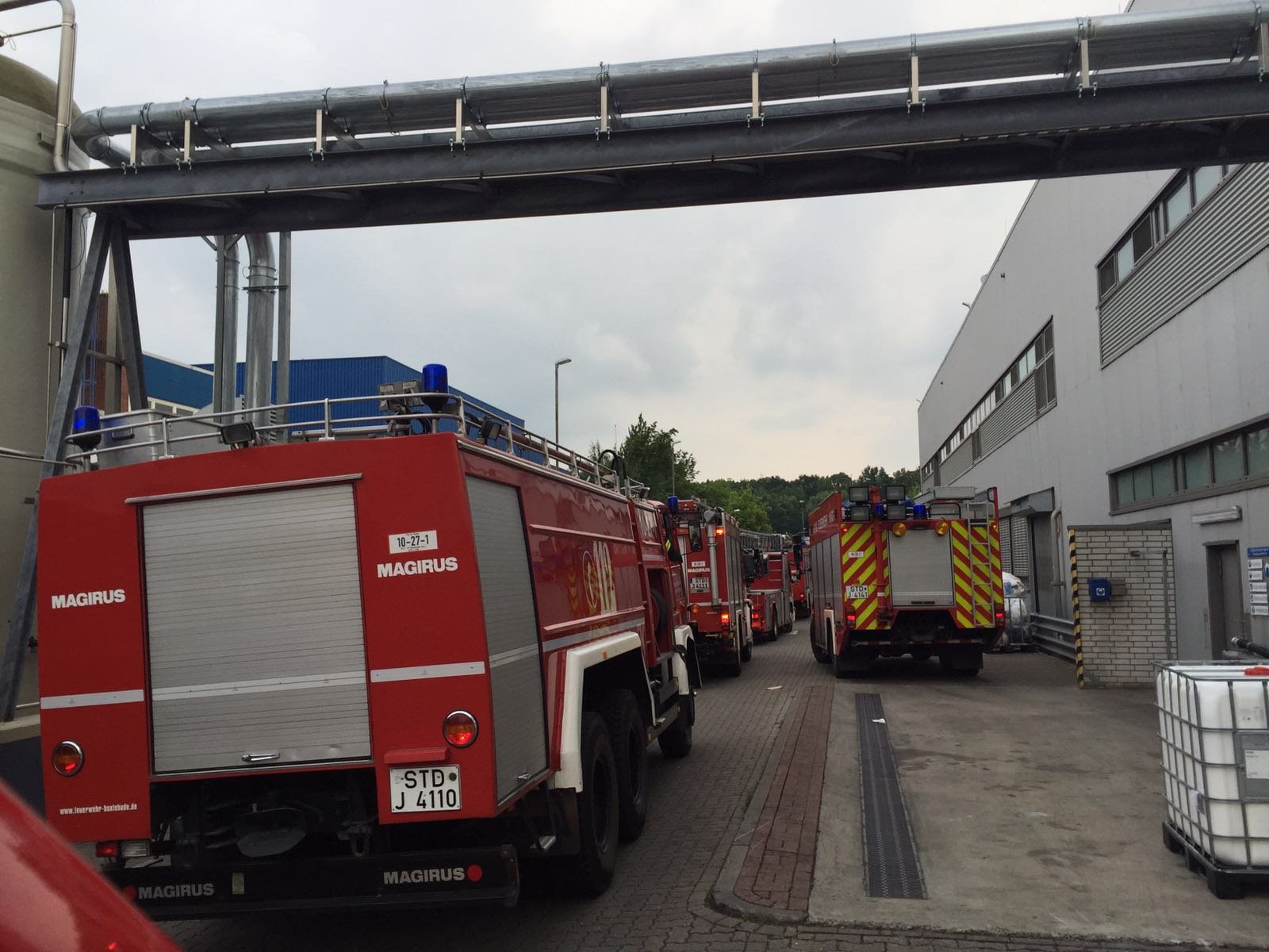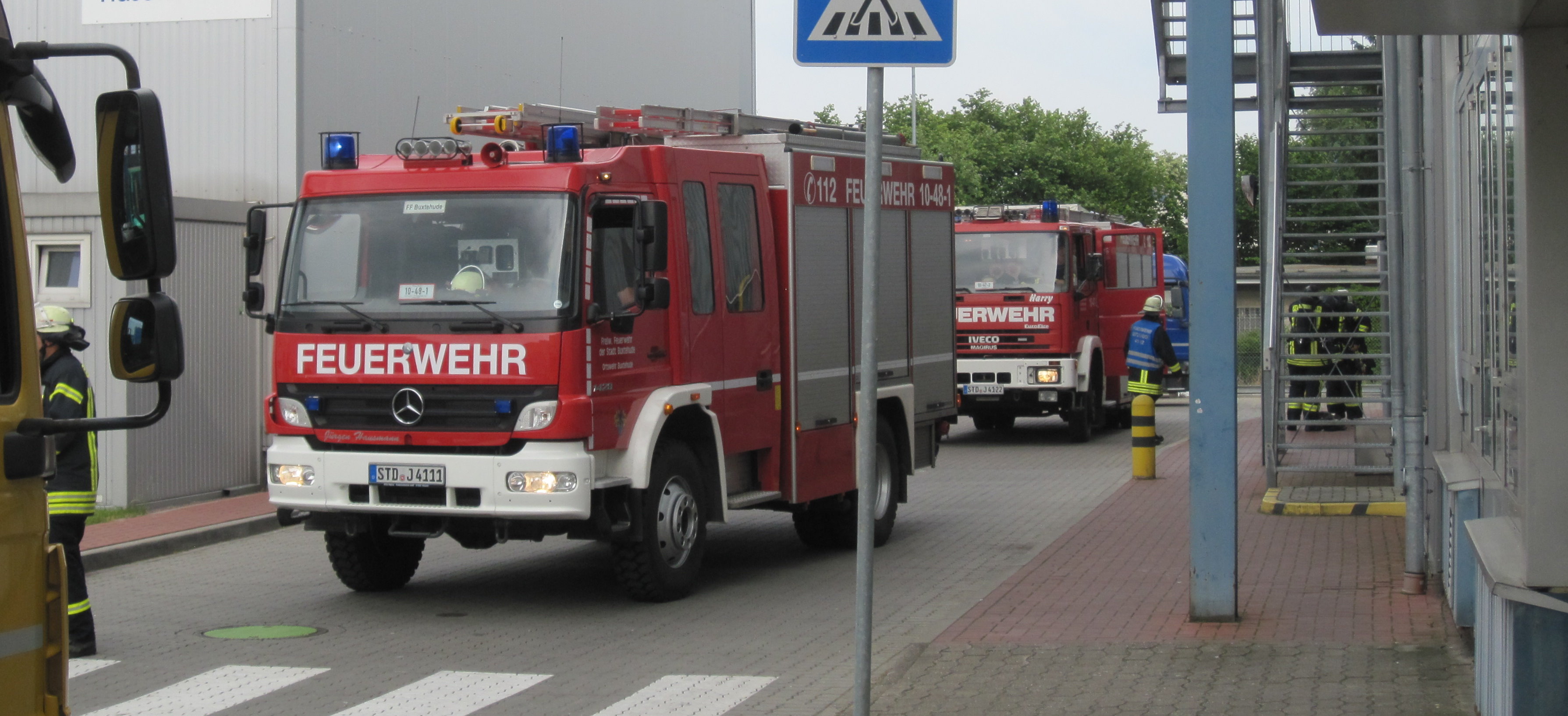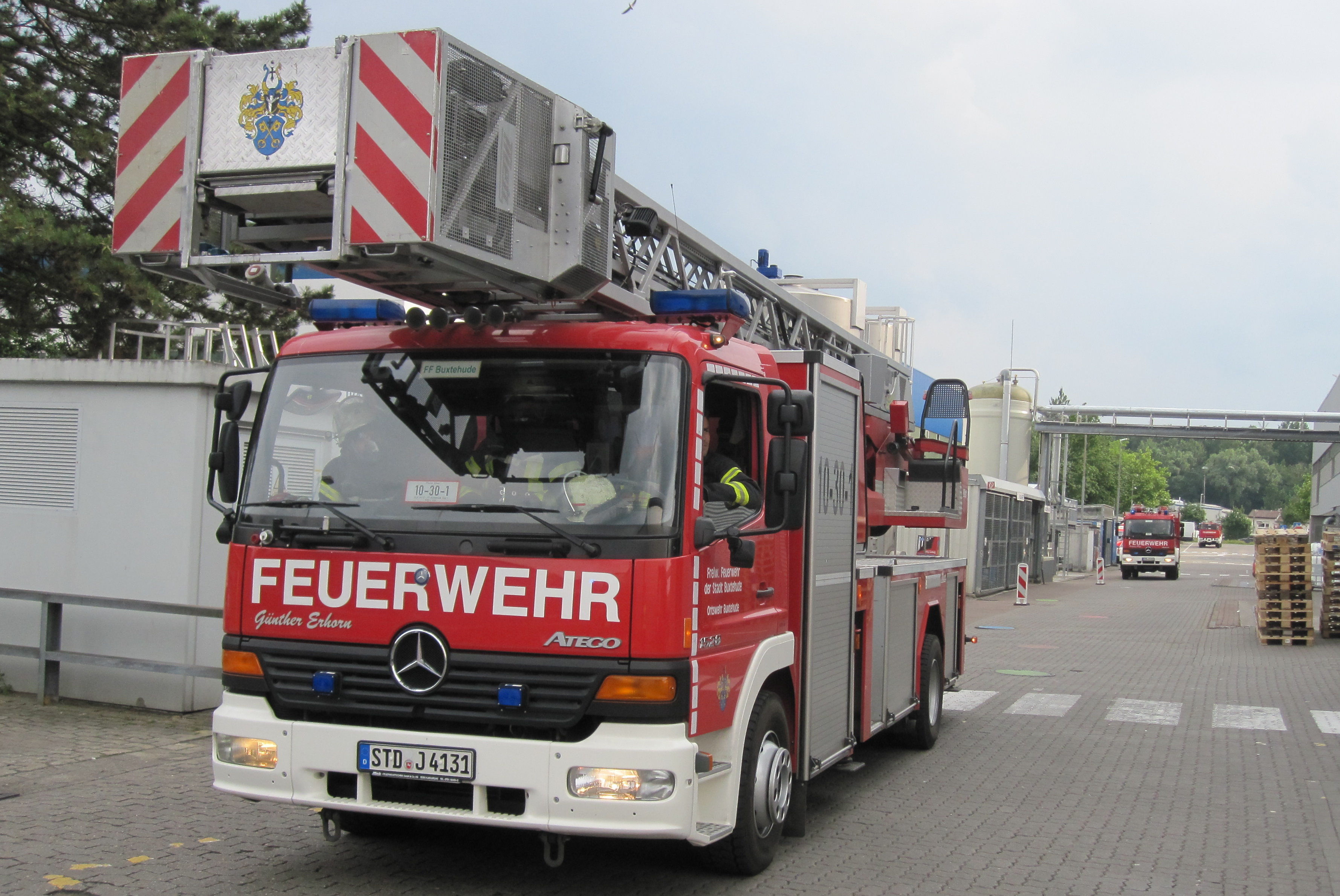 Ein großangelegtes Übungsszenario sorgte am Donnerstagabend für eine Alarmübung beider Züge der Ortsfeuerwehr Buxtehude auf dem Gelände eines großen Industriebetriebes am Alten Postweg. Laut ersten Meldungen sollte in einer der vielen Lager-und Produktionshallen Verpackungsmaterial brennen.