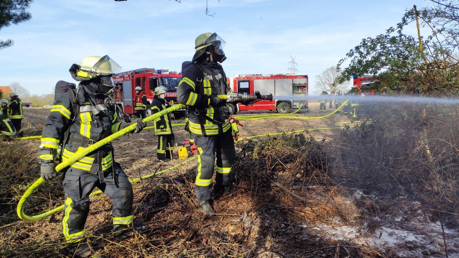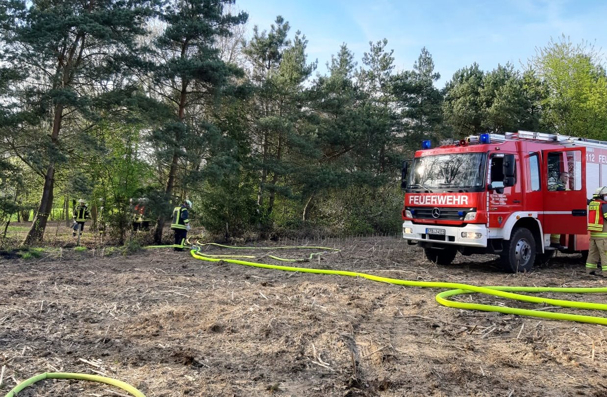 Am frühen Abend des Ostermontags wurden die Einsatzkräfte aus Immenbeck und Ovelgönne / Ketzendorf sowie vom Zug I der Ortsfeuerwehr Buxtehude in die Klosterfeldstraße nach Eilendorf alarmiert. Dort hatte sich aus uns nicht bekannten Gründen ein Feuer im Unterholz entzündet und konnte sich bereits einige Zeit ausbreiten. Gemeinsam wurde das Feuer gelöscht und der Boden zum Teil mittels Netzwasser (Löschwasser bei welchem die Oberflächenspannung durch geringe Mengen Schaummittel herabgesetzt wird) großzügig gewässert.