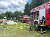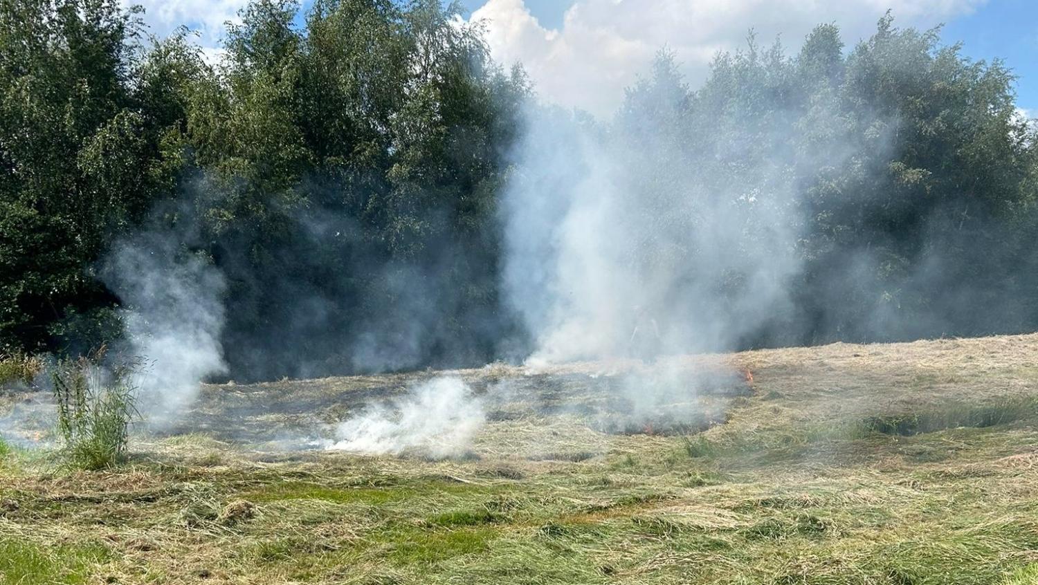 Zwischen Dammhausen und Heitmannshausen stand am Sonntagnachmittag eine etwa 200m² große Grasfläche in Flammen. Gemähtes Heu hatte aus ungeklärter Ursache Feuer gefangen.