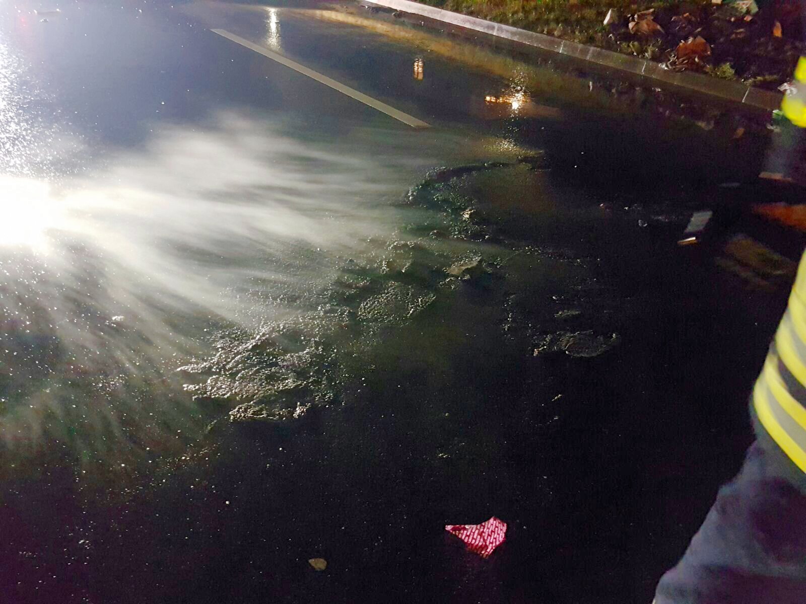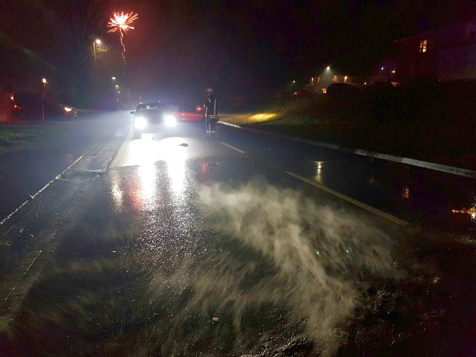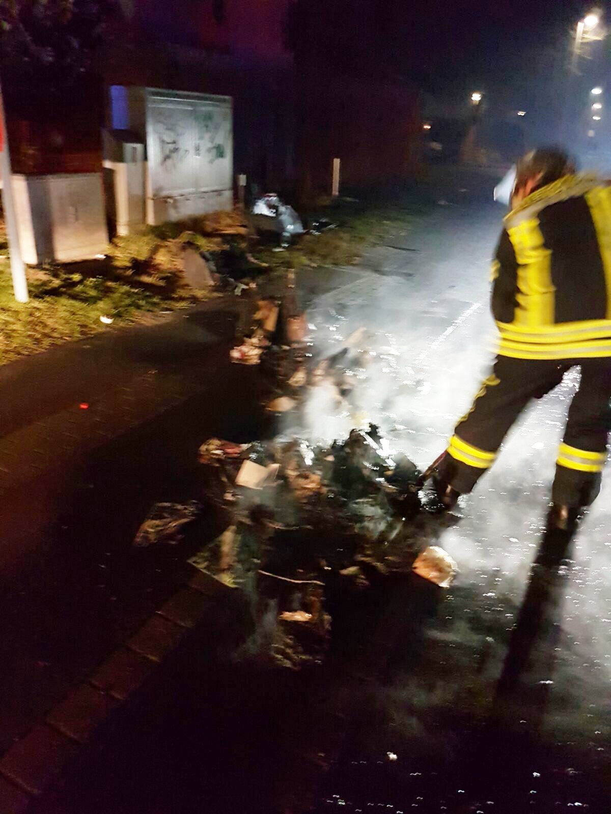 Im Bereich des Studentenwohnheims hatten Chaoten drei Hausmülltonnen auf die Fahrbahn gezogen und mit Feuerwerkskörpern in Brand gesteckt. Die Einsatzkräfte vom Hilfeleistungslöschfahrzeug konnten unter Atemschutz die Flammen der in Vollbrand stehenden Tonnen rasch löschen. Der entstandene Sachschaden dürfte jedoch beträchtlich sein. Dadurch, dass die Mülltonnen aufgrund der extremen Hitzeeinwirkung in sich zusammengeschmolzen sind, hat sich der flüssige Kunststoff mit dem Straßenbelag verbunden. Ein Abkratzen der erkalteten Überreste war mit Schaufeln nicht mehr möglich, so dass dort wohl eine Straßenbaufirma anrücken muss.