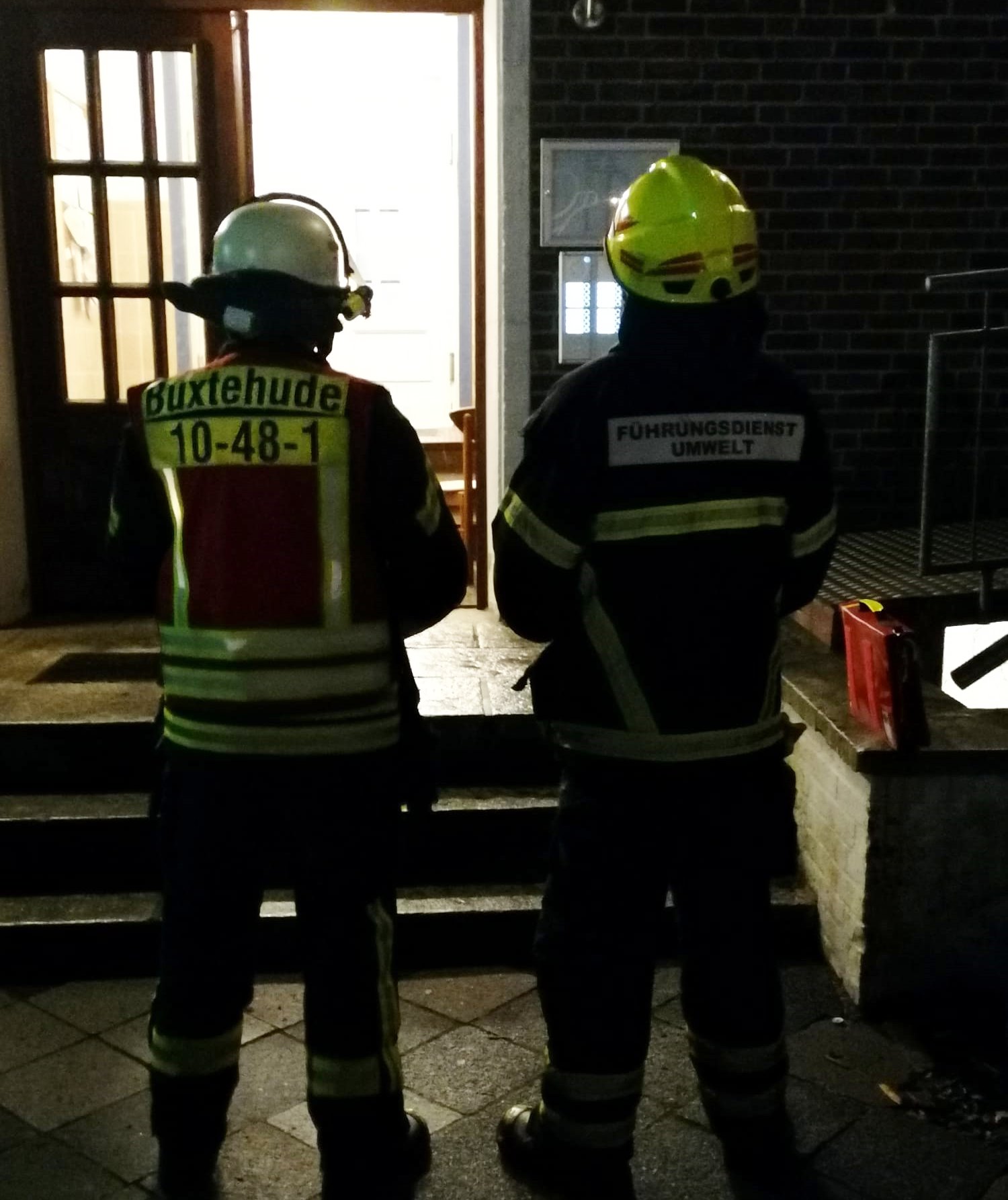 Die ersten eintreffenden Führungskräfte der Ortsfeuerwehr Buxtehude evakuierten das Gebäude und befragten die Bewohner nach einer möglichen Ursache für die Geruchsbelästigung. Dabei konnten keine hilfreichen Aussagen aufgenommen werden, so dass sich die Einsatzkräfte letztendlich entschieden die Züge I & II, die Unterstützungsgruppe örtliche Einsatzleitung, die Messgruppe des Landkreises und die Buxtehuder Stadtwerke zu einem fraglichen Gasaustritt zu alarmieren. Hinzu kamen ein Rettungswagen und später ein Rettungswagen der DRK Bereitschaft Buxtehude.