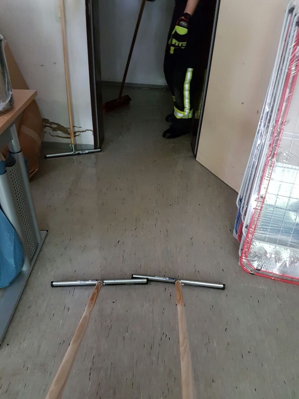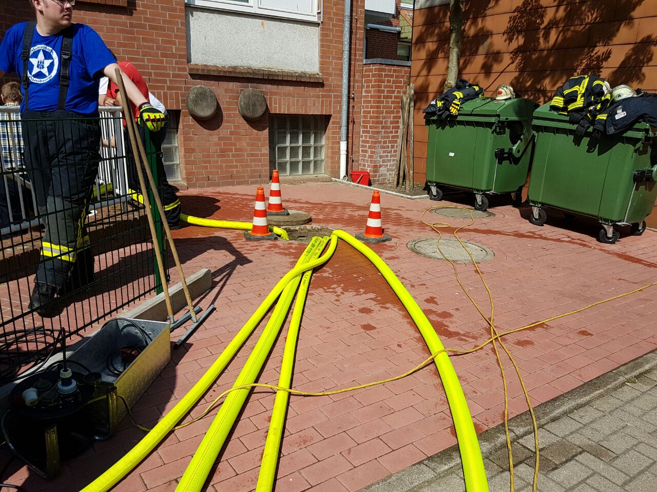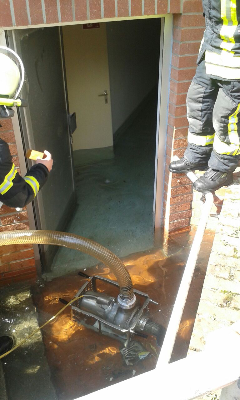 Eine größere technische Hilfeleistung mussten am Sonntagnachmittag die Einsatzkräfte vom Zug I der Ortsfeuerwehr Buxtehude in der Grothe-Marie-Straße ableisten. Im Keller des ehemaligen Polizeigebäudes, welches derzeit als Flüchtlingsunterkunft genutzt wird, war eine Frischwasserleitung geplatzt und unbemerkt große Mengen Wasser ausgetreten. Erst durch einen Stromausfall wurde der Schaden bemerkt und die Feuerwehr verständigt.