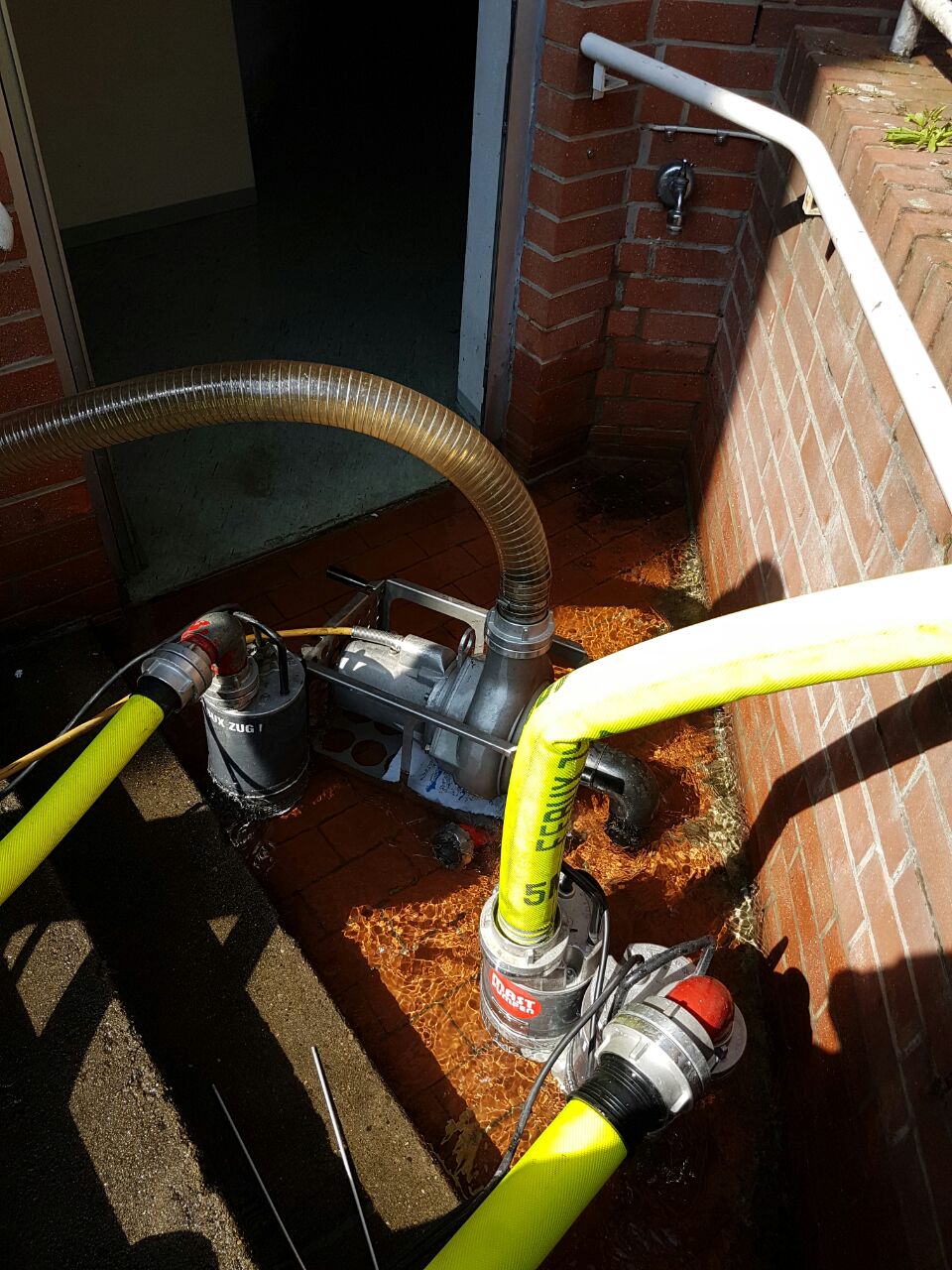Mit vier Tauchpumpen und einer Hochleistungstauchpumpe benötigten die Einsatzkräfte etwa zwei Stunden um den Keller wieder trockenzulegen, der etwa einen halben Meter unter Wasser stand. Anschließend konnten die drei ausgerückten Fahrzeuge wieder zum Feuerwehrhaus zurückkehren. Die Stadtwerke kümmerten sich um die Sicherstellung der Gas- und Stromversorgung.