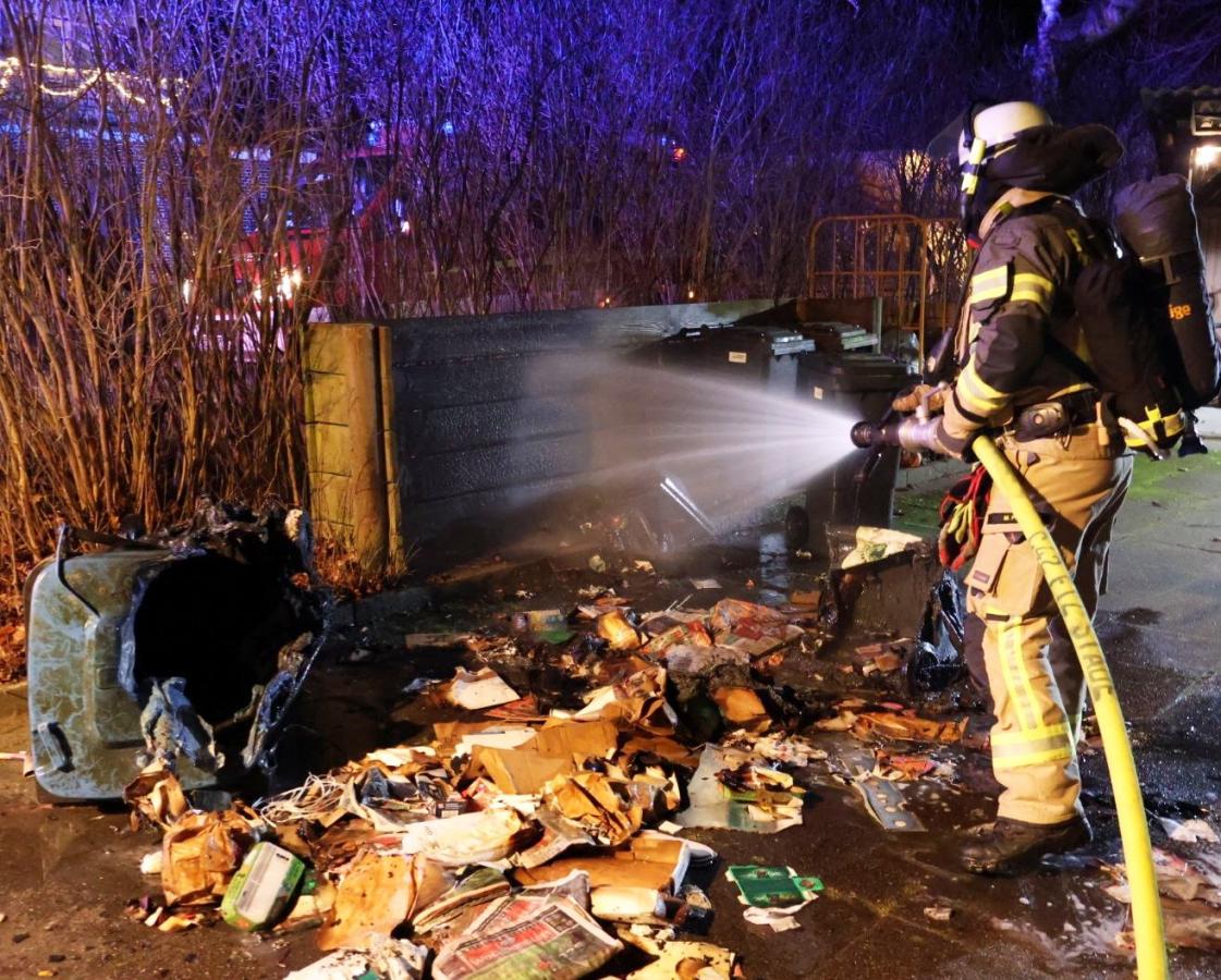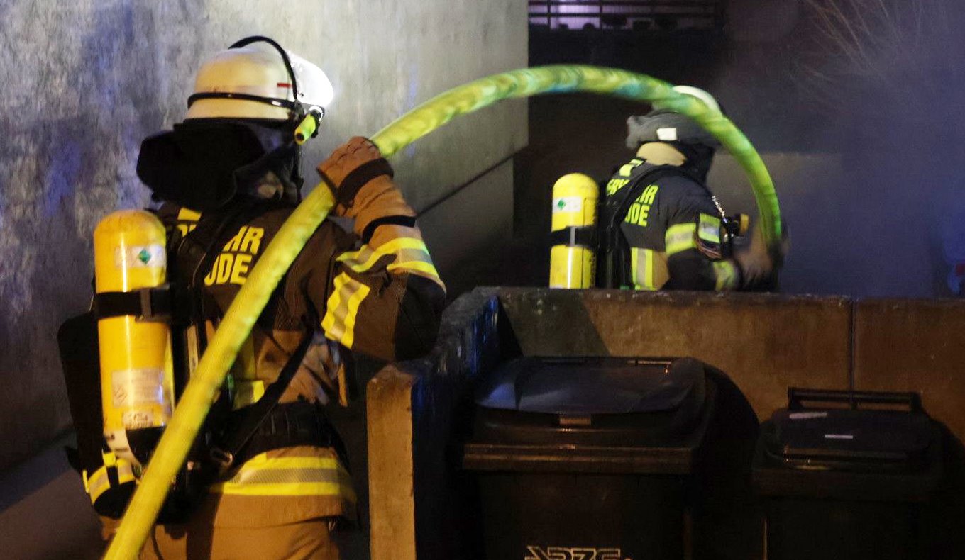Zwei brennende Mülltonnen in der Hermann-Löns-Straße waren dann der letzte Einsatz im vergangenen Jahr. Die Einsatzkräfte vom Zug II der Ortsfeuerwehr Buxtehude löschten das Feuer ab.
