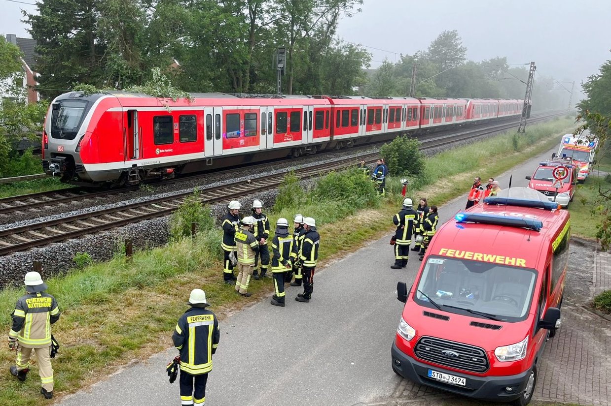 Ein abgebrochener Ast war am frühen Montagmorgen auf die Oberleitung der Bahnstrecke Buxtehude - Stade gestürzt. Der Triebfahrzeugführer einer S-Bahn hatte das Hindernis in Höhe Hedendorf erkannt und leitete eine Notbremsung ein. Dennoch kam die Bahn nicht mehr rechtzeitig zum Stehen und riß den Ast samt herabhängender Oberleitung mit sich.