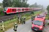 Nach der erfolgreichen Erdung der Oberleitung um den Unfallort konnten zwei Personen aus der beschädigten S-Bahn evakuiert werden.