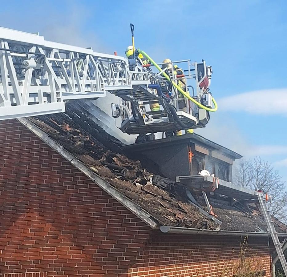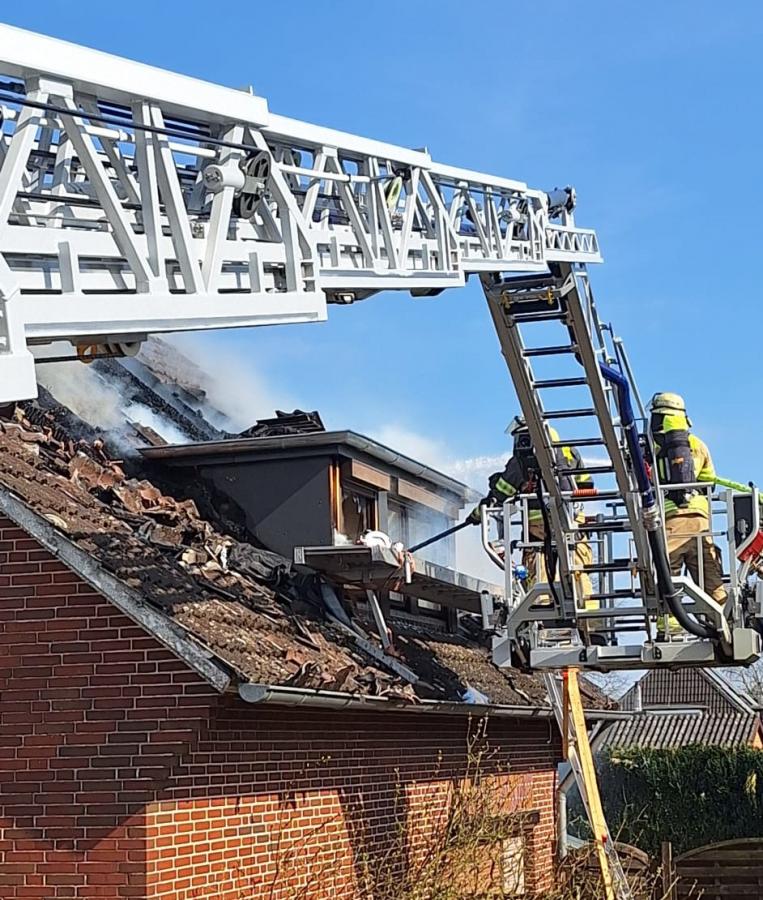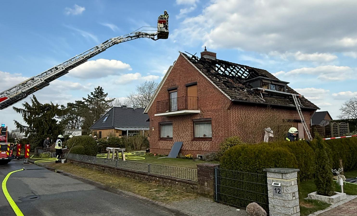 Ein Dachstuhlbrand in einem Wohnhaus in Nindorf (SG Apensen) sorgte am Donnerstagmittag für einen Vollalarm aller Ortsfeuerwehren der Samtgemeinde Apensen und der Drehleiter der Ortsfeuerwehr Buxtehude (Zug I). Dacharbeiten hatten das Feuer an einer Dachgaube ausgelöst.