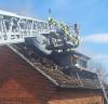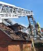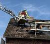 Von der Buxtehuder Drehleiter aus wurden die Dachpfannen von Dach und Gaube aufgenommen und die Brandherde von oben bekämpft.
