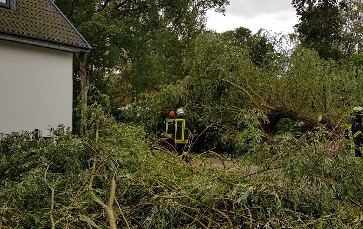 Eine große Weide am Fußweg entlang der Este konnte am späten Montagabend ihre Last nicht mehr tragen und stürzte um. Ein Gewirr aus Ästen, Stamm und Blattwerk versperrte den Fußweg zwischen Festhalle und Parkstraße.