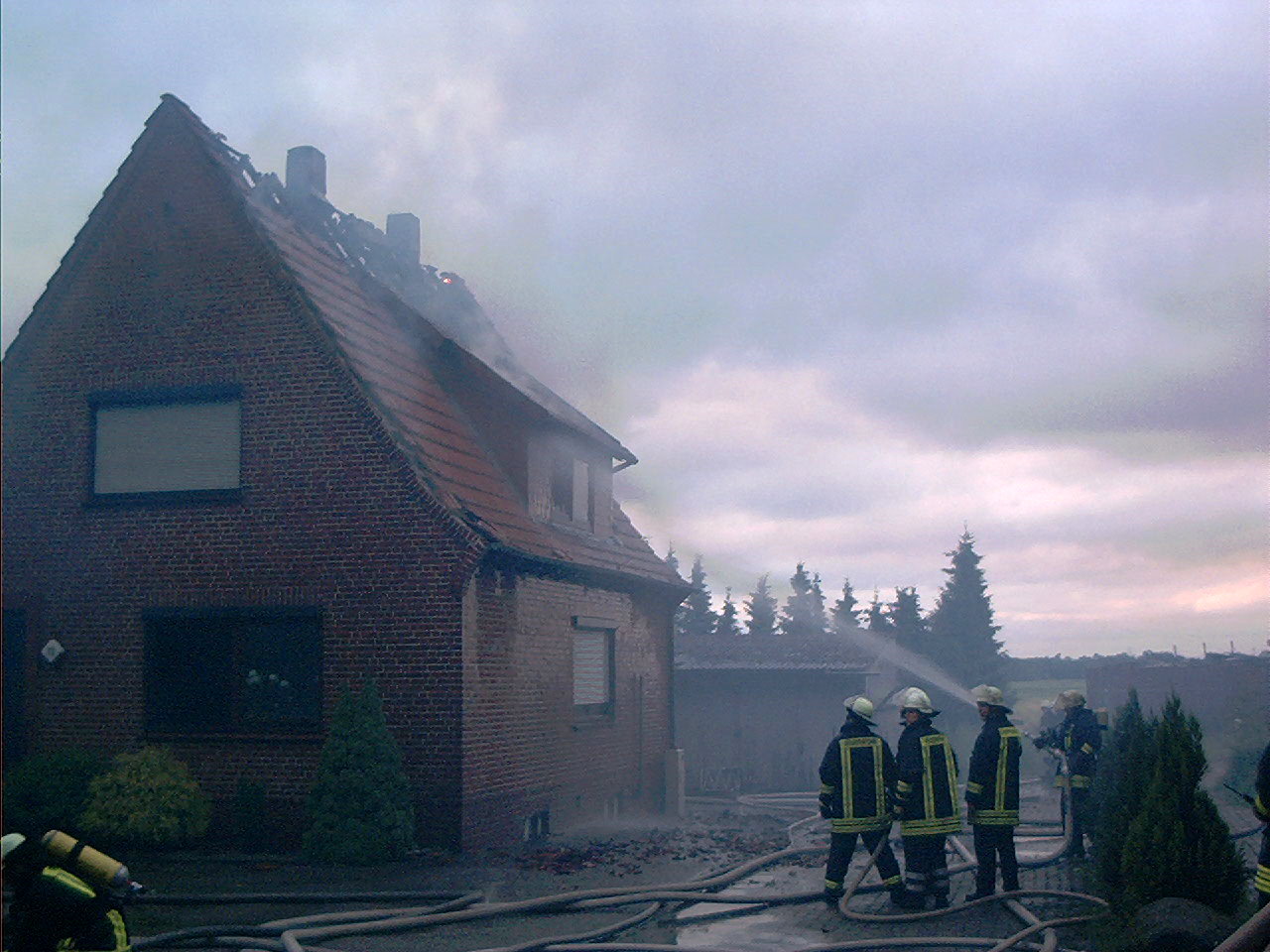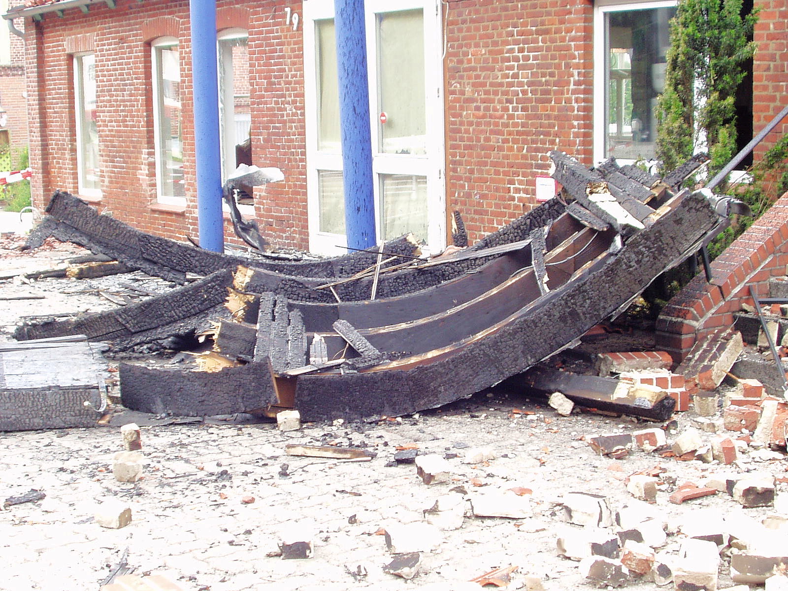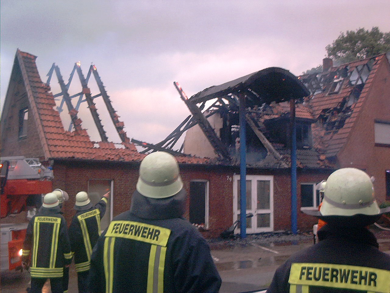 Am Dienstagmorgen wurden um 11:42 Uhr noch einmal die Ortsfeuerwehren Buxtehude (Zug I) und Ovelgönne zu Nachlöscharbeiten alarmiert. Einige Dachsparren hatten wieder angefangen zu brennen.