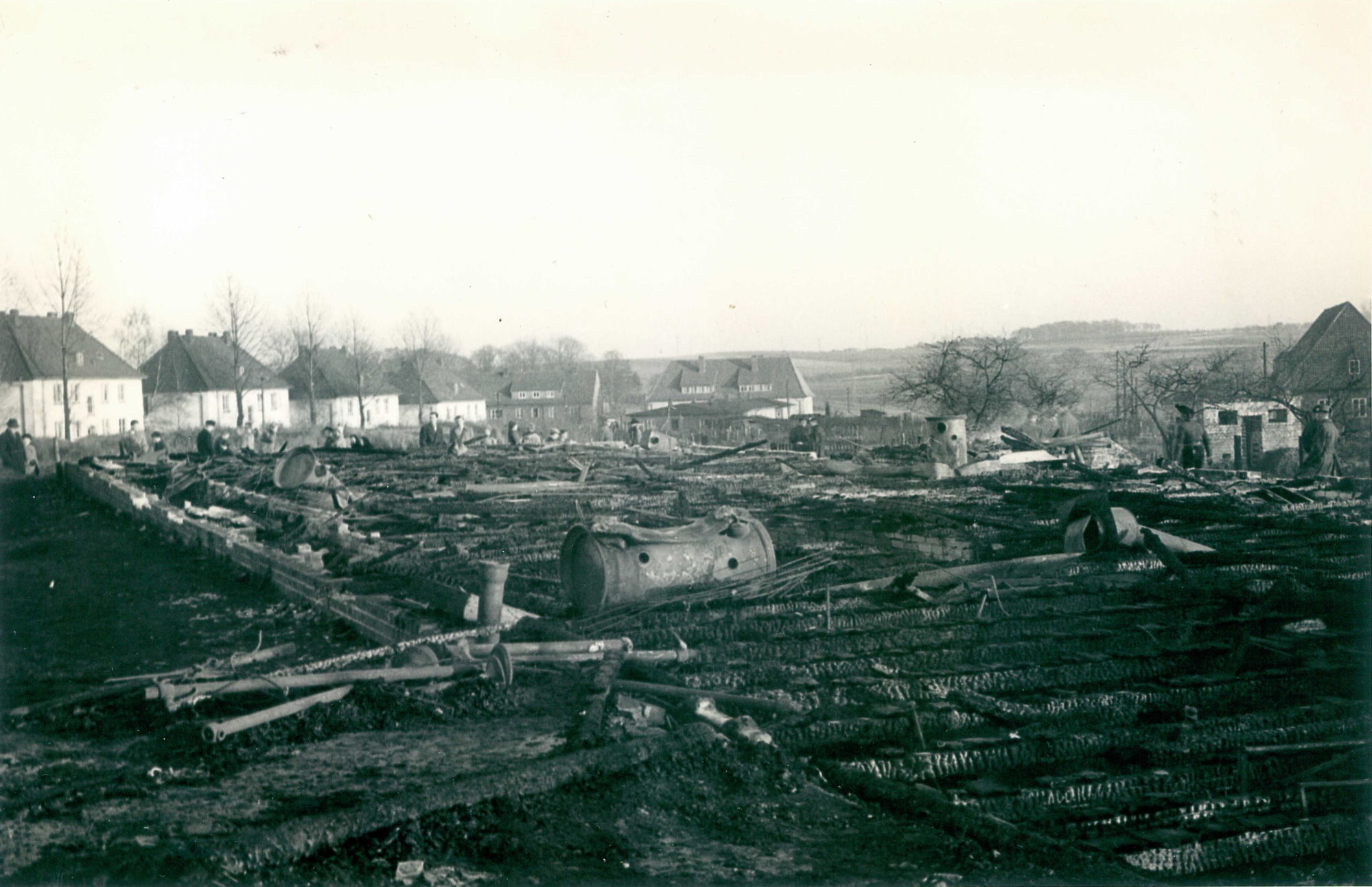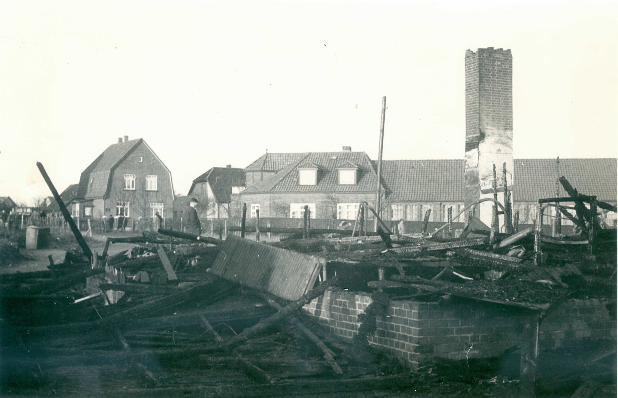 Eine große Gefahr wurde erst am folgenden Tag bekannt. Brennende Dachpappestücke waren in der Nacht mehrere hundert Meter weit geflogen. Im Ellerbruch mussten mehrere Personen brennende Klumpen vom Reetdach eines Wohnhauses entfernen. Auch ein Mitglied der Ortsfeuerwehr konnte nicht zum Einsatz kommen, da auch sein Haus von den brennenden Dachpappestücken bedroht war.
