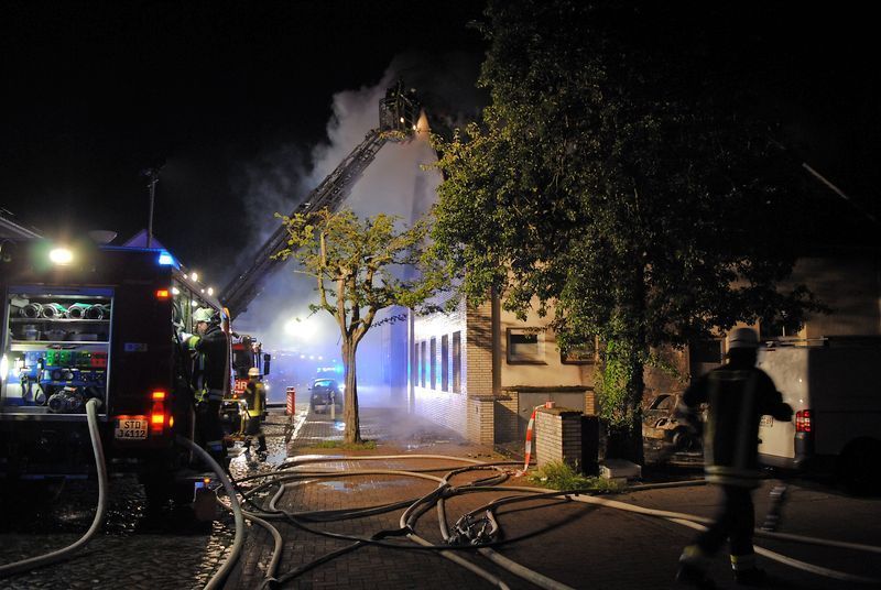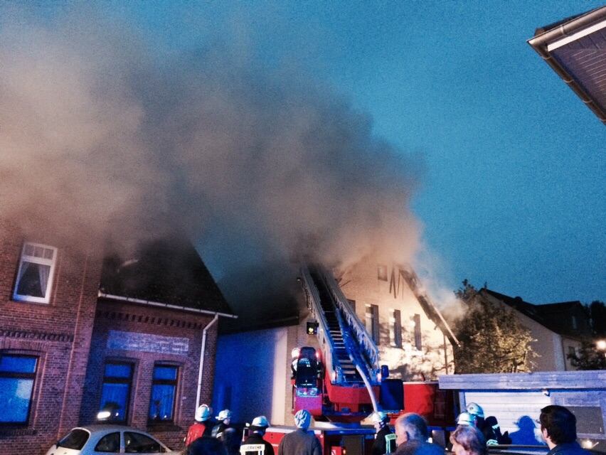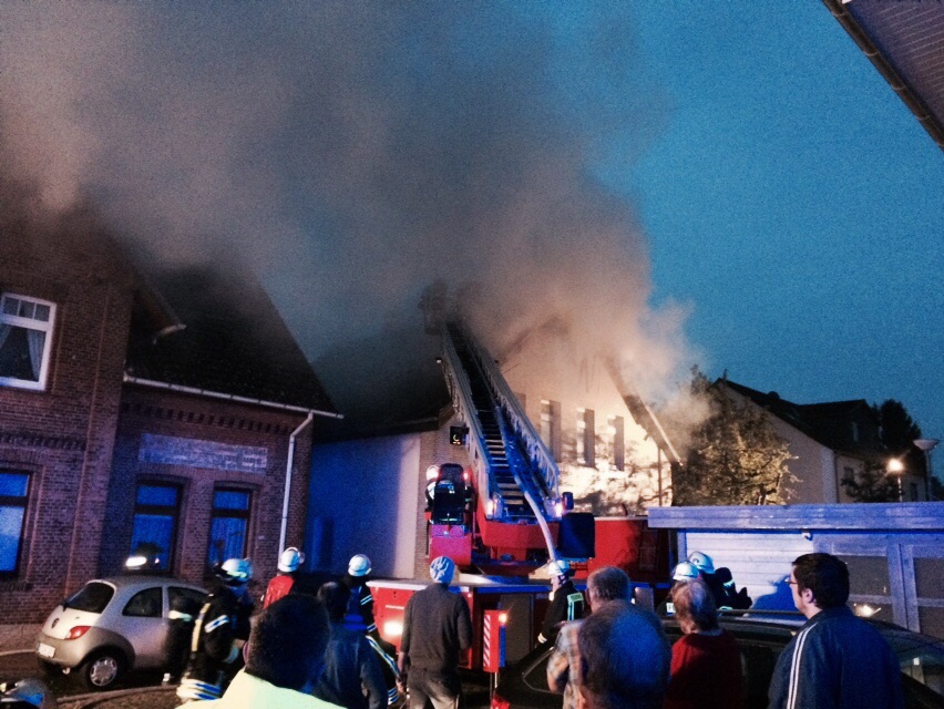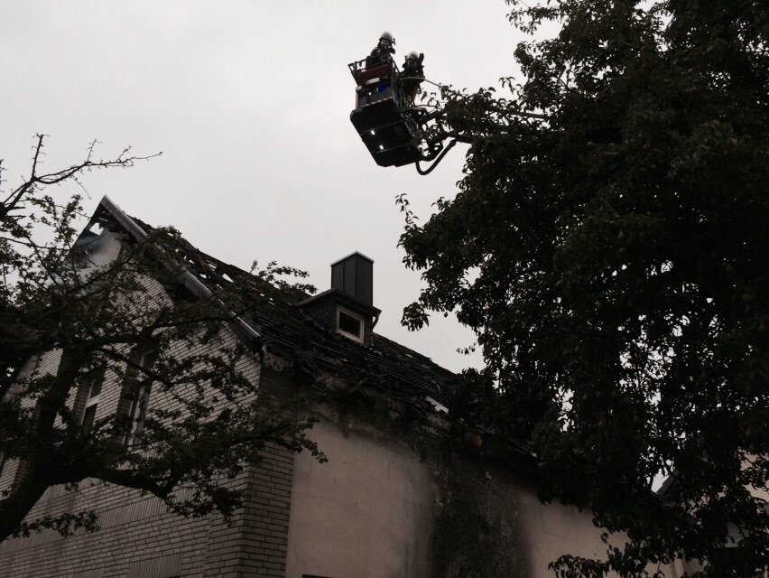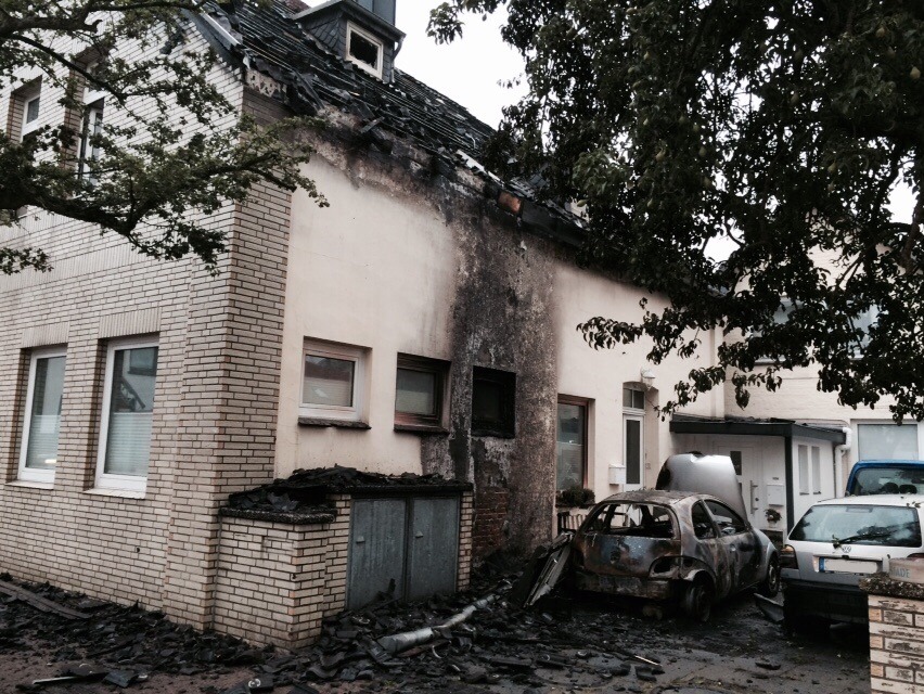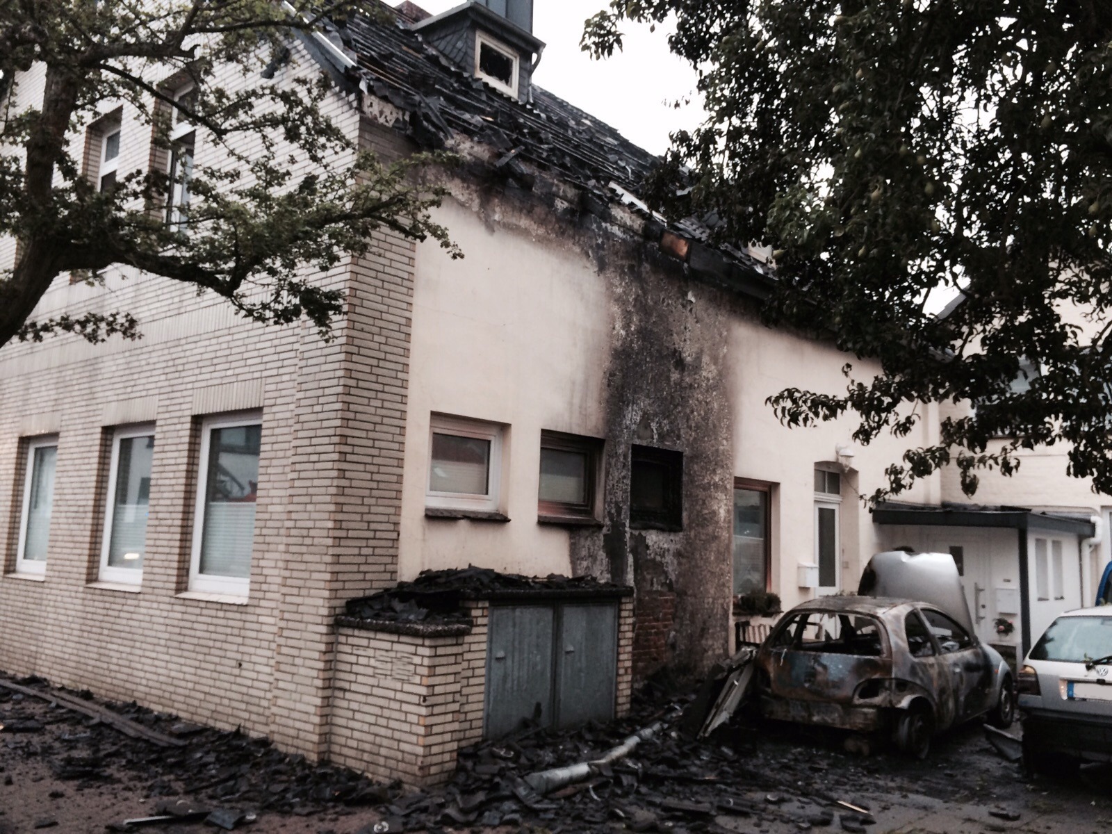 Großfeuer in der Lutherallee - Fahrzeugbrand greift auf Dachstuhl über