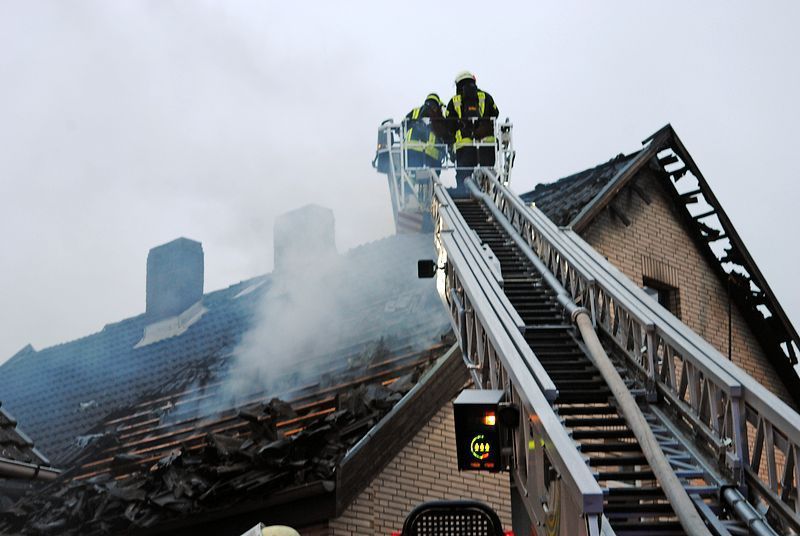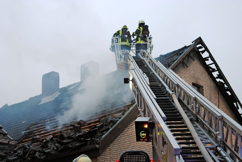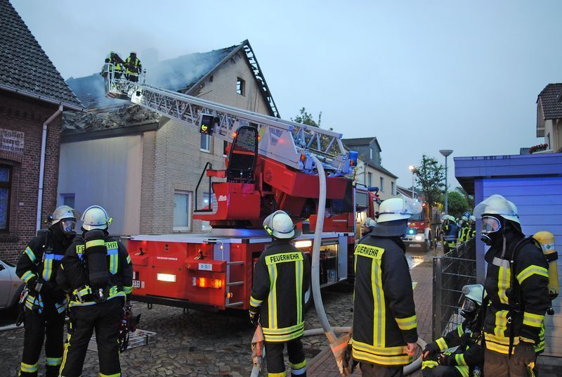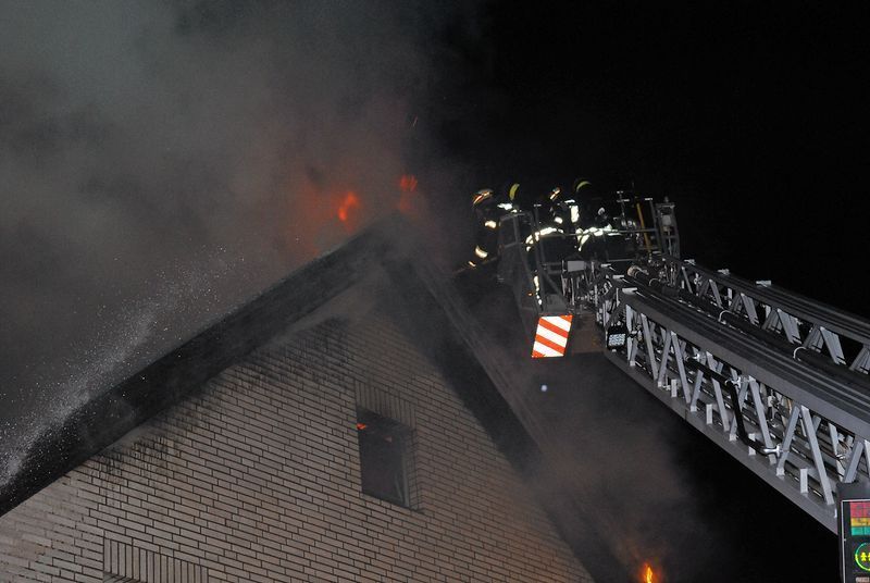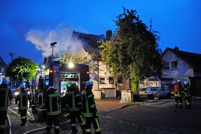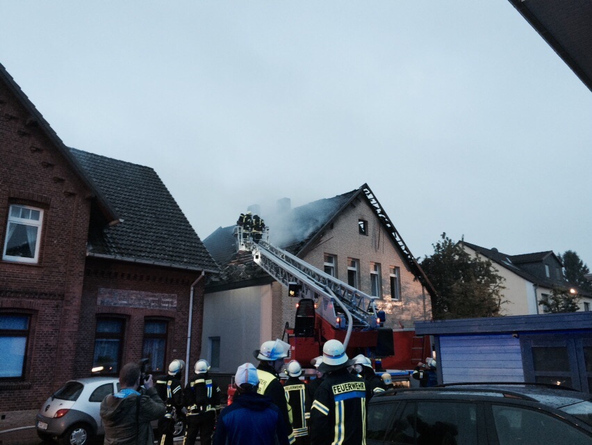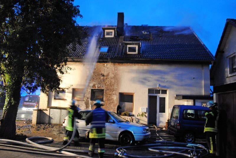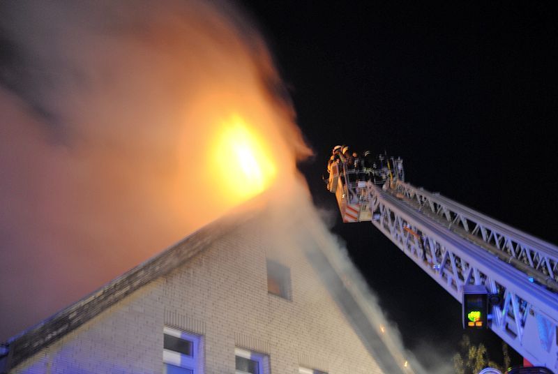Großfeuer in der Lutherallee - Fahrzeugbrand greift auf Dachstuhl über