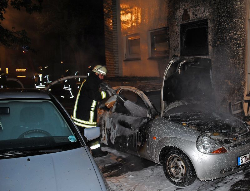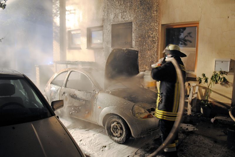 Zu einem Fahrzeugbrand mit Flammenüberschlag auf ein Mehrfamilienhaus wurde der Zug II in der Nacht zu Montag in die Lutherallee alarmiert.