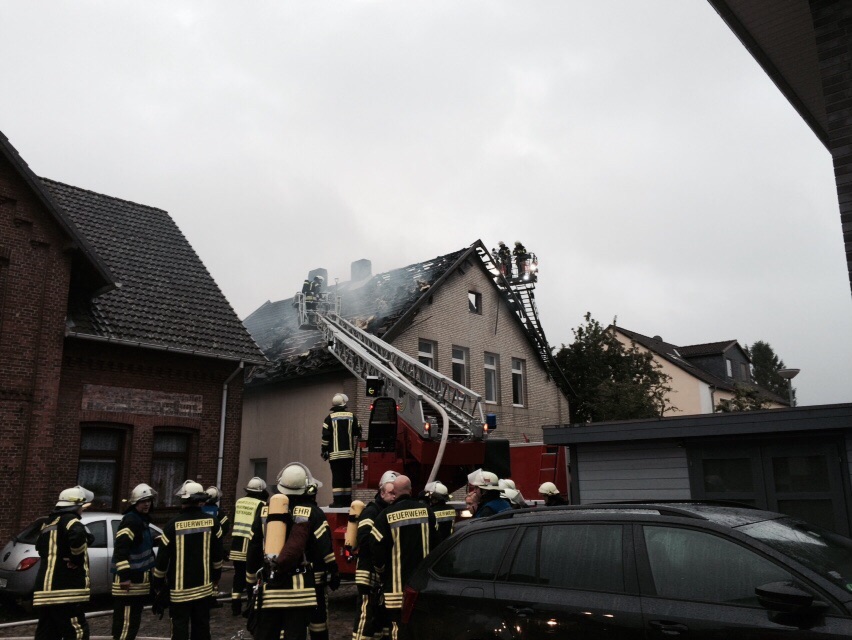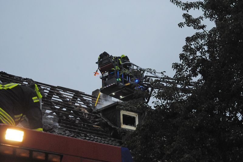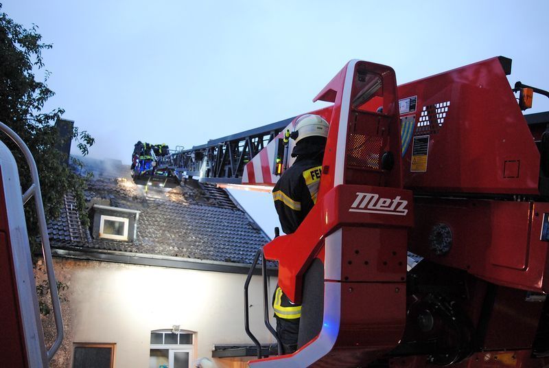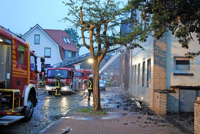 Bereits beim Eintreffen der ersten Einsatzkräfte an der Einsatzstelle hatten die Flammen des in Vollbrand stehenden Fahrzeugs auf den Dachstuhl übergegriffen. Umgehend wurde daraufhin der Zug I nachgefordert, um gemeinsam die Flammen im Dachstuhl zu bekämpfen. Hierzu musste das Dach großflächig geöffnet werden, um an die Brandnester zu gelangen. Zur weiteren Unterstützung wurde eine zweite Drehleiter aus dem benachbarten Neu Wulmstorf nachgefordert, sowie weitere Atemschutzgeräteträger aus Neukloster und Dammhausen. Über die Drehleitern und durch das Dach konnte mit insgesamt vier C-Rohren das Feuer gelöscht werden.