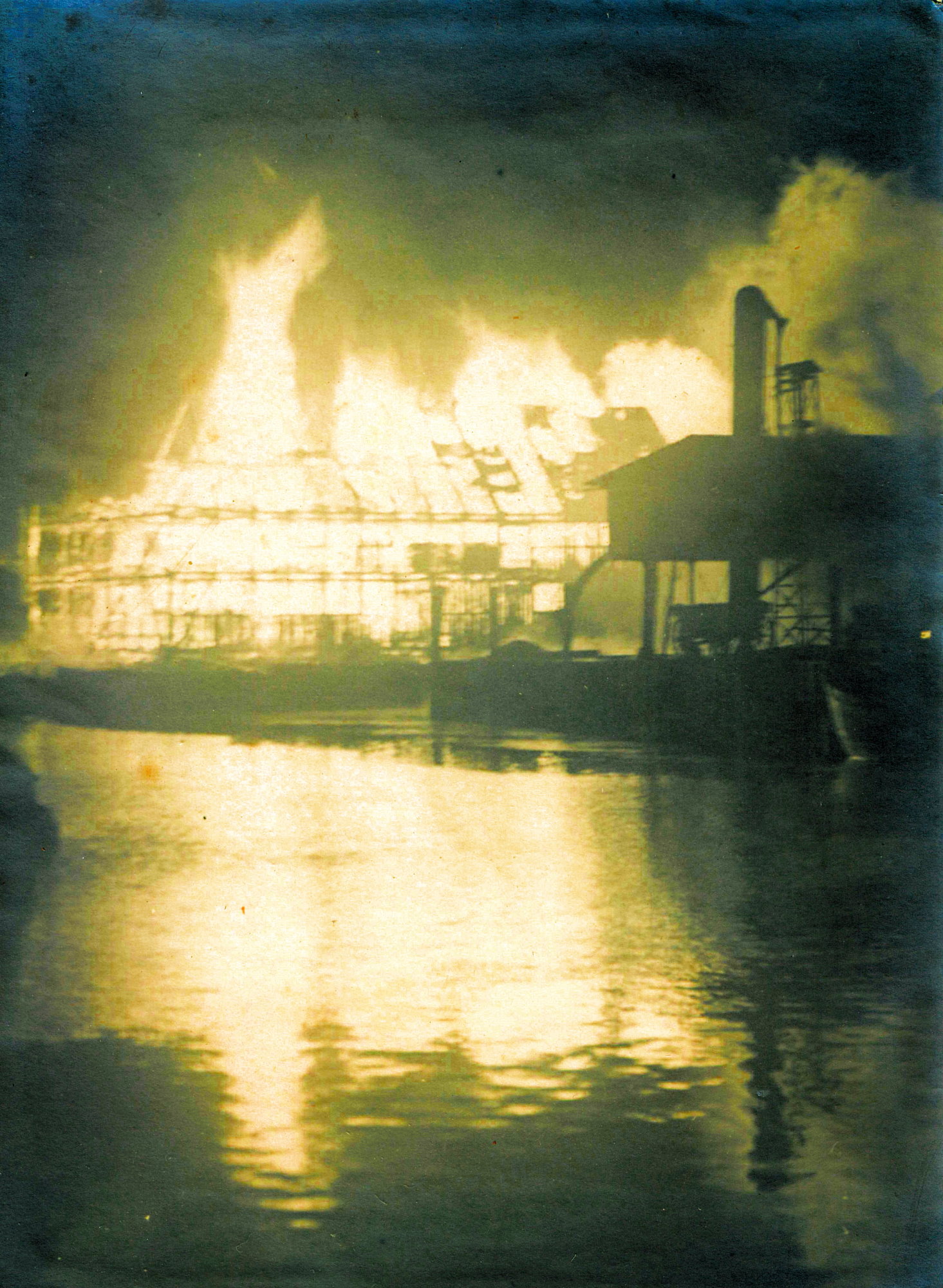 Solch ein Großfeuer hatte es die letzten Jahre nicht mehr in Buxtehude gegeben. Die direkt am Hafen liegende Holzhandlung Pickenpack stand am Abend des 15. Januar 1931 in hellen Flammen. Zunächst brannte nur der hintere Teil der riesigen, hölzernen Lagerhalle. Doch als die Buxtehuder und Altklosteraner Feuerwehr eintraf, waren sie aufgrund der hohen Brandlast, bestehend aus gelagertem Holz und Kohlen, nahezu machtlos. Trotz eines massiven Löschangriffs gelang es nicht, das Feuer aufzuhalten. Viel schlimmer noch, durch die extreme Hitze waren die Flammen auch auf das benachbarte Wohnhaus der Familie Pickenpack übergegriffen. Hier hatte man noch in Windeseile versucht, das gröbste Hab und Gut zu retten.