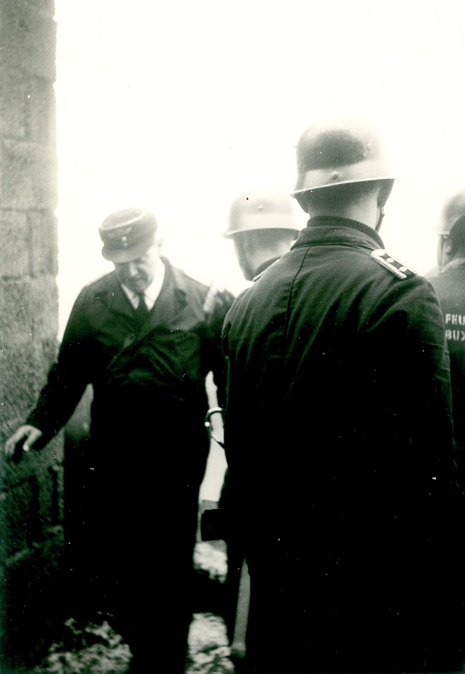 „Um 9 Uhr war ich mit meinem Kollegen Bender auf der Fahrt von Neukloster nach Jork", schildert Kriminal-Oberkommissar Wianke am Brandort seine Beobachtung, „als wir über Buxtehude den dicken Qualm sahen und vermuteten, daß ein Hochhaus brennt; wir fuhren sofort hierher." Die Kollegen der Schutzpolizei, an ihrer Spitze Oberkommissar SchödIer, waren, ebenso wie die Feuerwehr unter Kommando des Stadtbrandmeisters Hausmann, selbstverständlich noch schneller zur Stelle.
