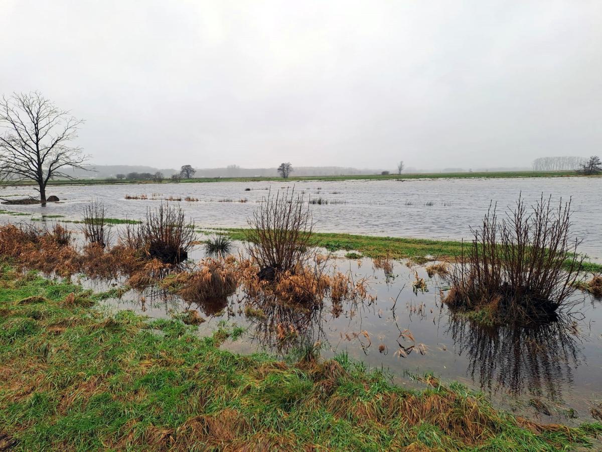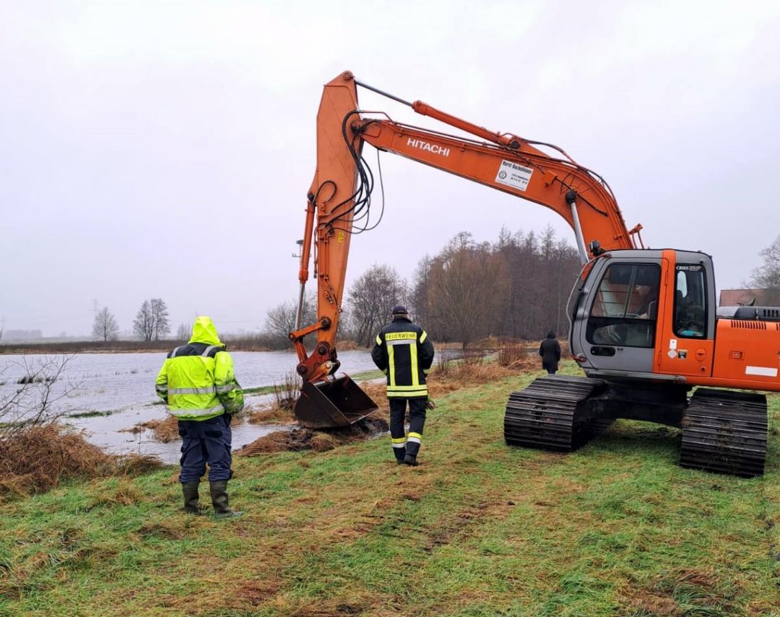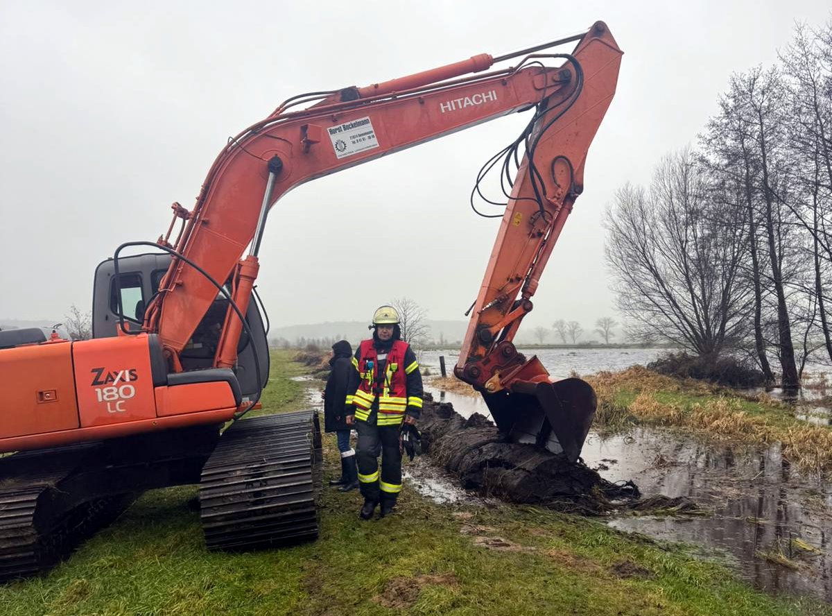 Die durch Starkregen und hohe Pegelstände gestauten Wassermassen drohten, den Deich zu überfluten. Das Wasser stand 5 cm unterhalb der Deichkante. Ein Deichbruch oder eine Überflutung hätten dazu geführt, dass die Wassermassen sich in Richtung der Chaussee bewegt hätten. Deshalb wurde entschieden, die Unterstützung eines ansässigen Lohnunternehmens anzufordern, welches mit einem Bagger die Deichkante zusätzlich aufschüttete.