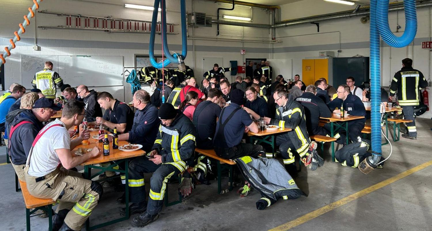 Derweil bereiteten einige Helfer im Feuerwehrhaus Zug I ein Mittagessen vor. Ein Cateringunternehmen hatte Currywürste und Kartoffelsalat zur Stärkung geliefert.