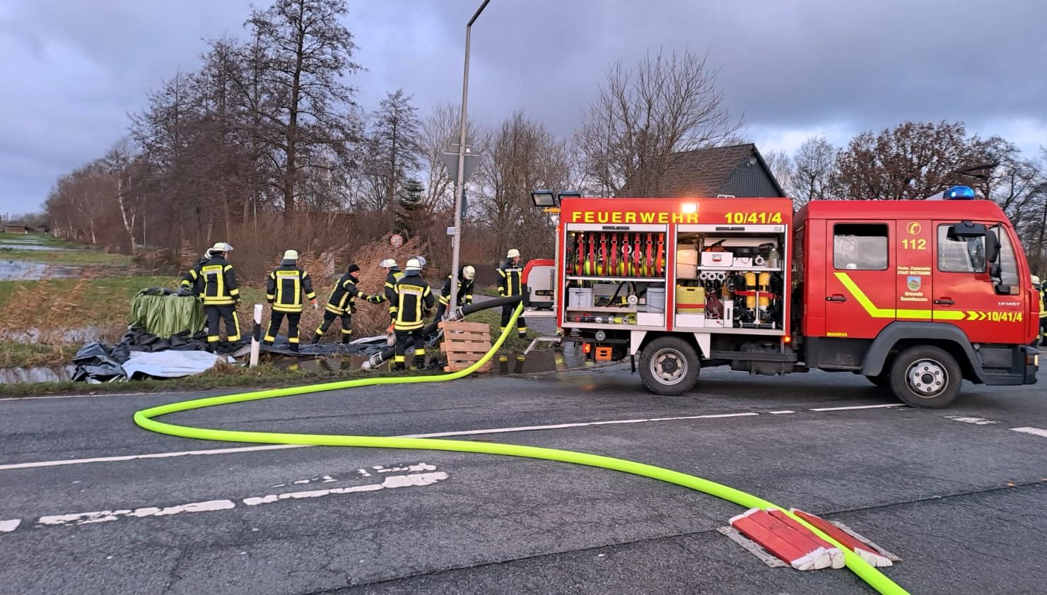 Um kurz nach 8 Uhr wurden die Sirenen in Dammhausen ausgelöst, und die Kräfte der Ortsfeuerwehr Dammhausen wurden zum Gerätehaus zur Lagebesprechung einberufen. Der Auftrag lautete, Sicherungsmaßnahmen zu ergreifen. Dazu mussten Elektrokästen mit Sandsäcken und Folien gesichert werden, um das Eindringen von Wasser zu verhindern. Um die Arbeiten zu erleichtern, musste das stehende Wasser vom Fußweg der Chaussee kurzzeitig abgepumpt werden. Eine weitere Maßnahme war das Einbringen einer Behelfsplatte in den Scheidegraben, um den Ablauf des Ilsmoorbachs in Richtung Buxtehude zu verschließen.