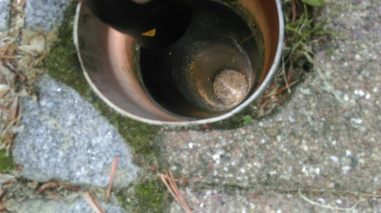 Die hinzugerufene Besatzung des Buxtehuder Rüstwagens vom Zug I musste nach einer ersten Erkundung zunächst einmal Beratschlagen und das passende Werkzeug suchen, um den Igel aus dem 100mm dicken Rohr zu heben. Das Tier füllte den gesamten Boden aus, so dass ein Unterschieben einer Hebevorrichtung kaum möglich war. Mit Hilfe einer dünnen Absperrstange mit Haken konnte der Igel schließlich zur Seite geschoben und vorsichtig hochgehoben werden. Nach einer kurzen Stärkung an der Wasserschale lief das augenscheinlich unverletzte Tier erleichtert davon.