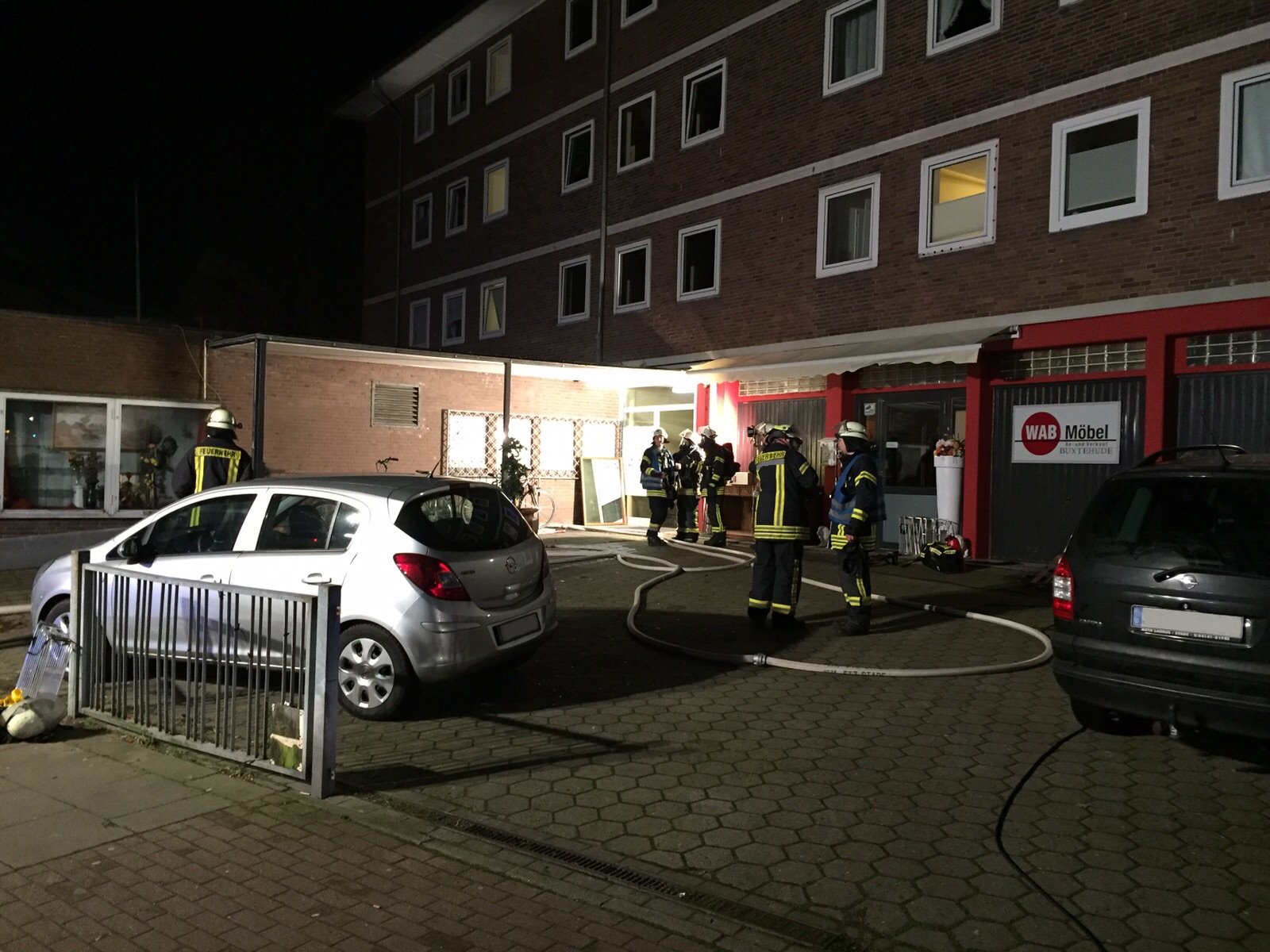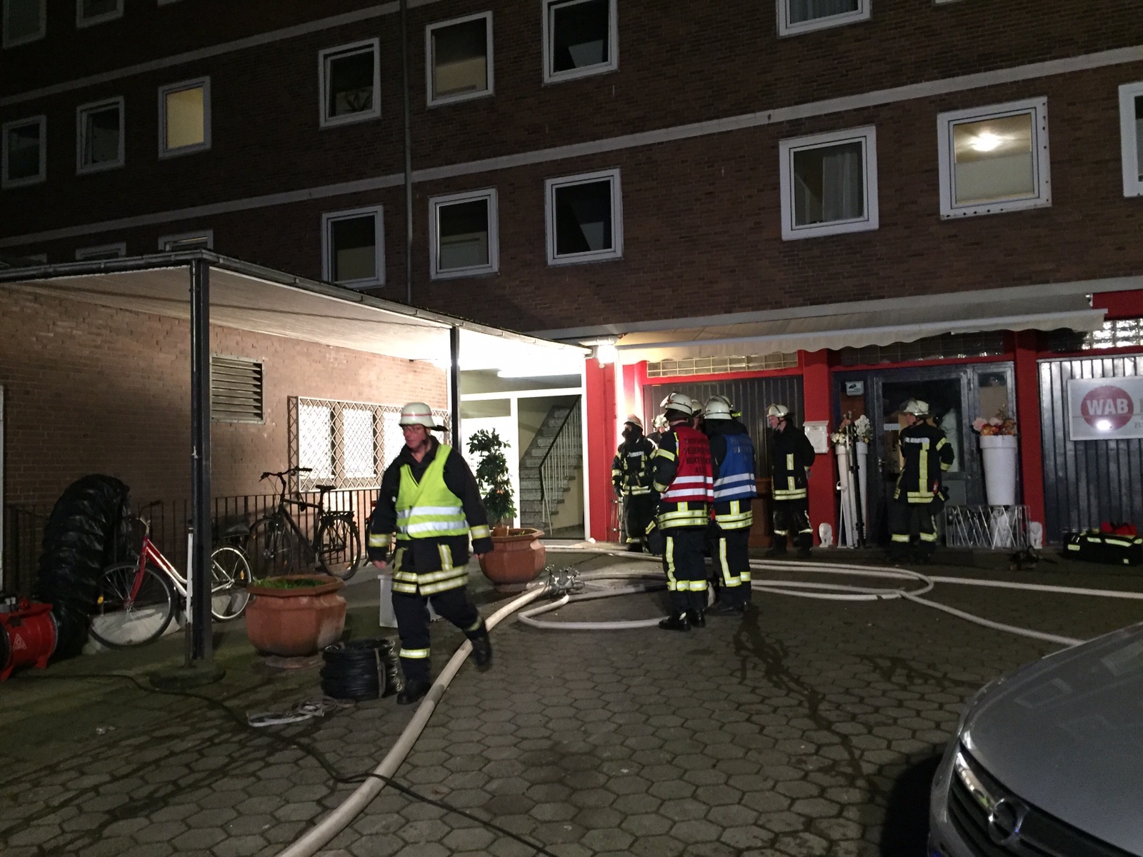 Ein Kellerbrand in einem Wohn- und Geschäftshaus war am späten Montagabend der Grund für einen weiteren Einsatz beider Züge der Ortsfeuerwehr Buxtehude. Beim Eintreffen der Kräfte vom Zug I an dem Eckgebäude zur Bahnhofstraße drang dichter Rauch aus den Kellerräumen. Umgehend wurden die gefährdeten Anwohner des angeschlossenen Mehrfamilienhauses evakuiert und vorübergehend im gegenüberliegenden Stadthaus untergebracht. Zur weiteren Unterstützung und zur Absicherung wurde der zweite Zug aus Altkloster nachgefordert.
