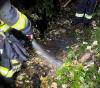 Vor Ort brannte Unrat am P+R Parkplatz im Gebüsch. Die Einsatzkräfte aus Neukloster setzten ein Kleinlöschgerät ein.