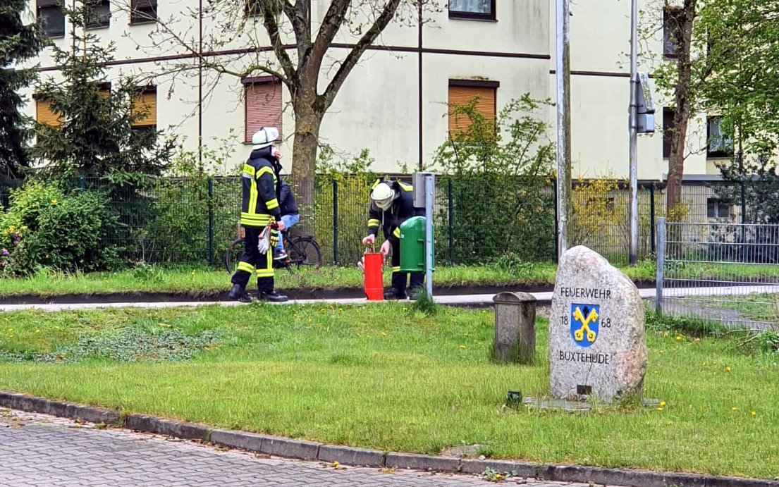 Ein brennender Papierkorb direkt vorm Feuerwehrhaus Westmoor sorgte am Freitagmittag für einen Alarm der Einsatzkräfte vom Zug I der Ortsfeuerwehr Buxtehude.