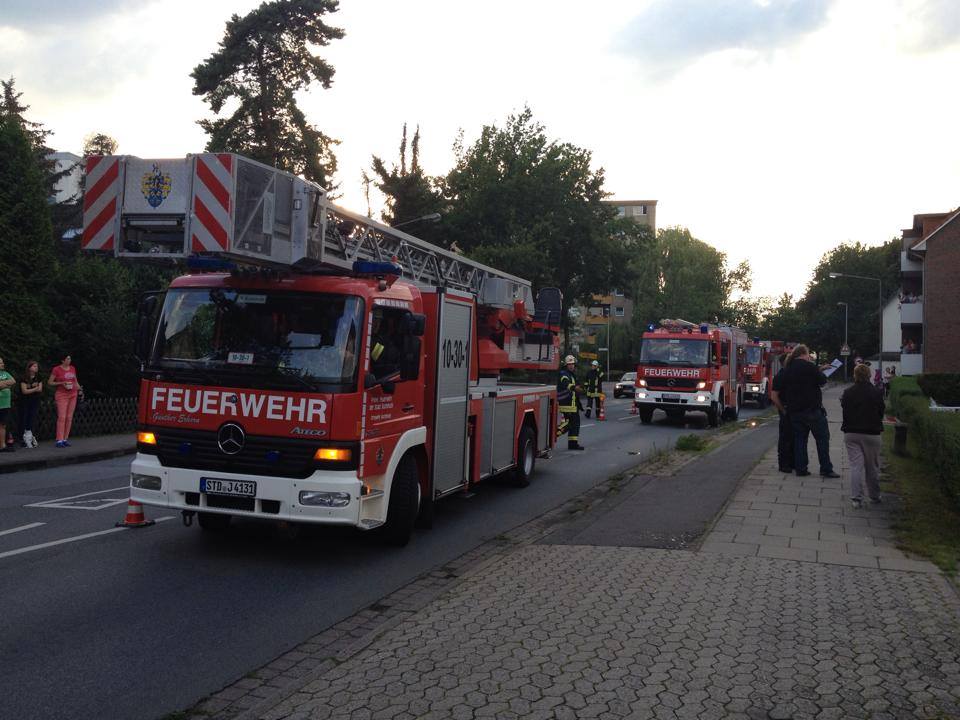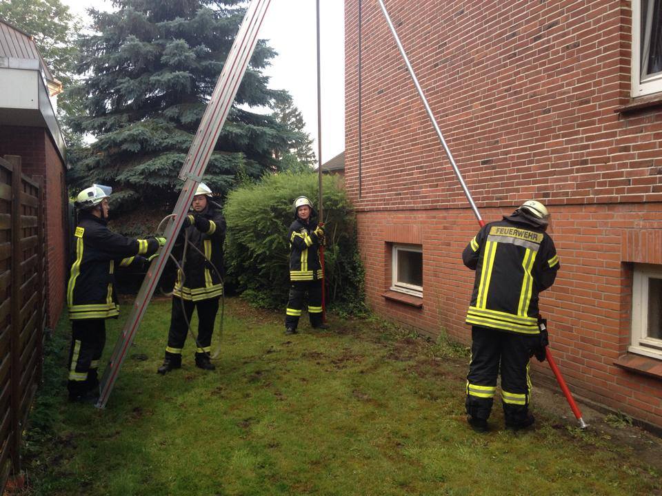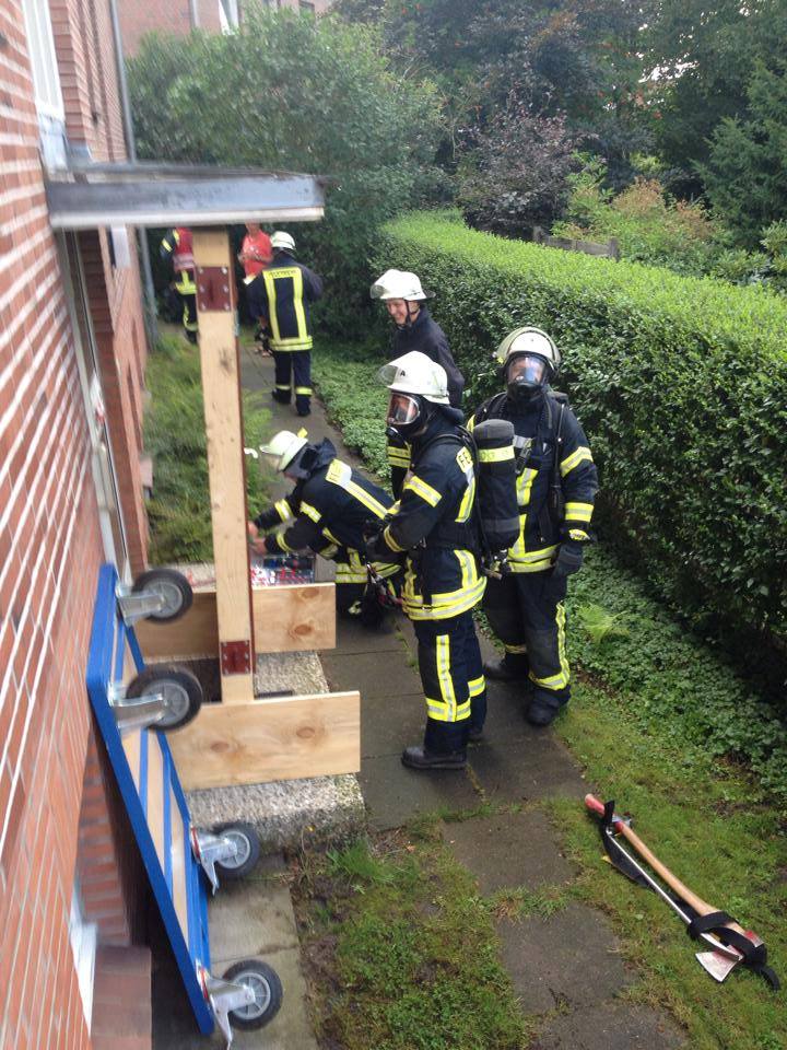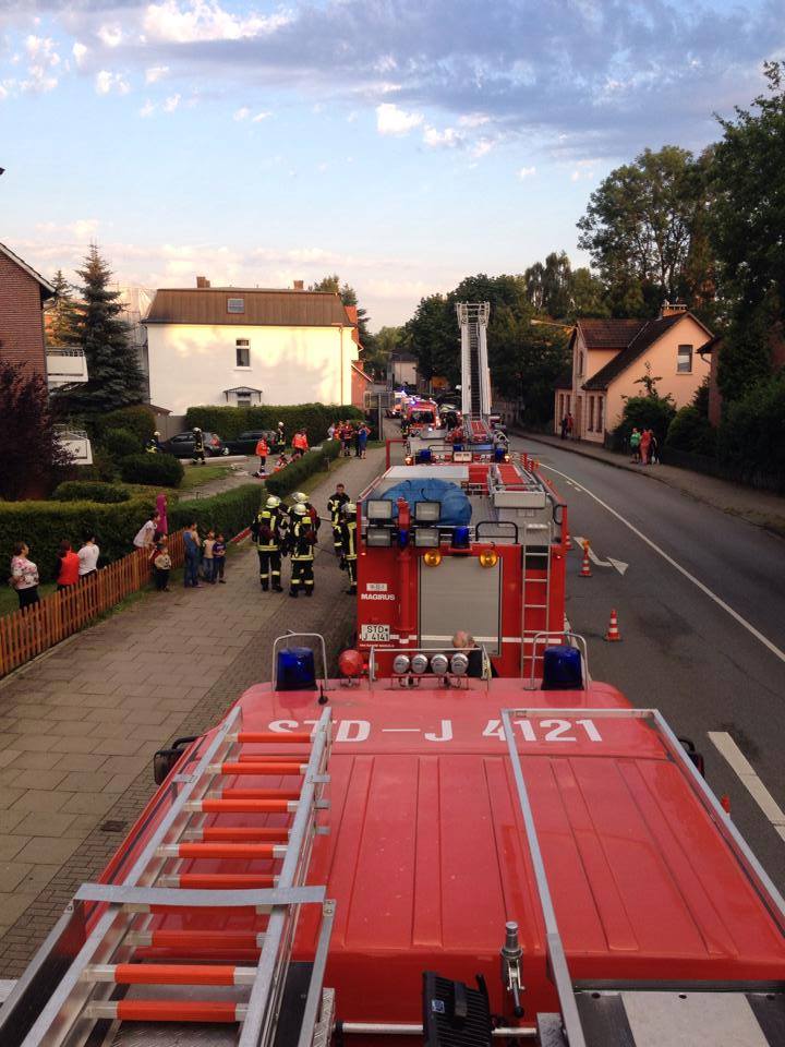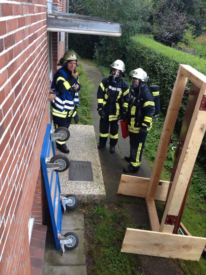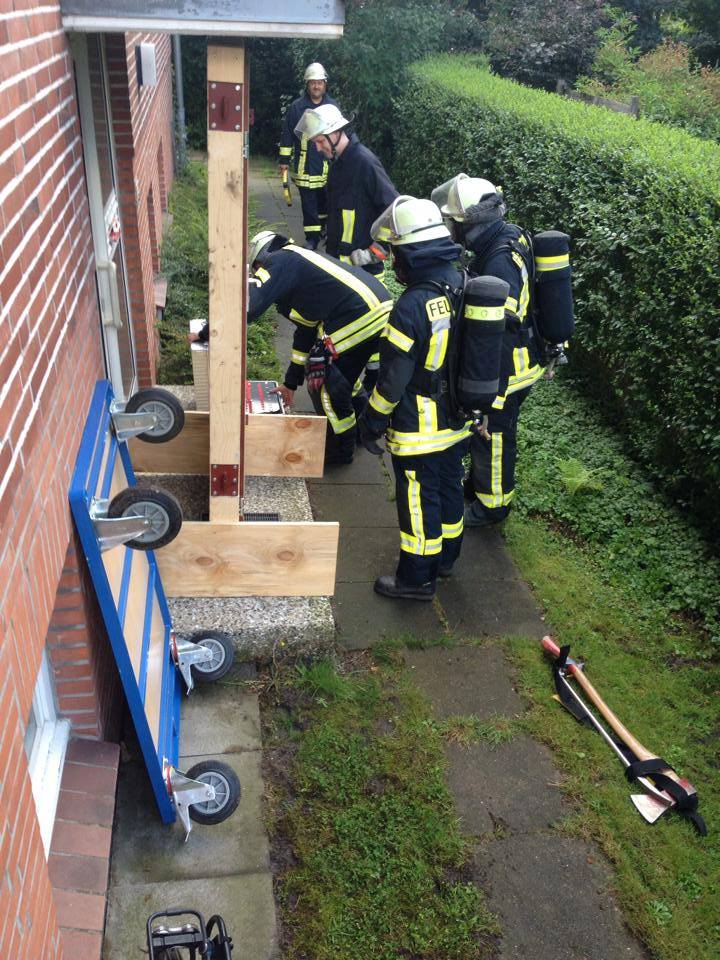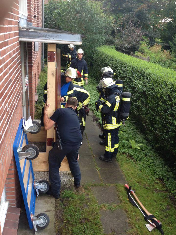 Nach dem Eintreffen des Zuges I der Ortsfeuerwehr Buxtehude musste nach einer ersten Lageerkundung zunächst die Hauseingangstür mit Türöffnungsgerät geöffnet werden. Kurz darauf konnte ein Trupp unter schwerem Atemschutz mit einem Gasmessgerät das Gebäude betreten und stellte einen vierstelligen CO-Wert fest. Parallel wurde der Brandschutz mittels aufgebautem Löschangriff sichergestellt.