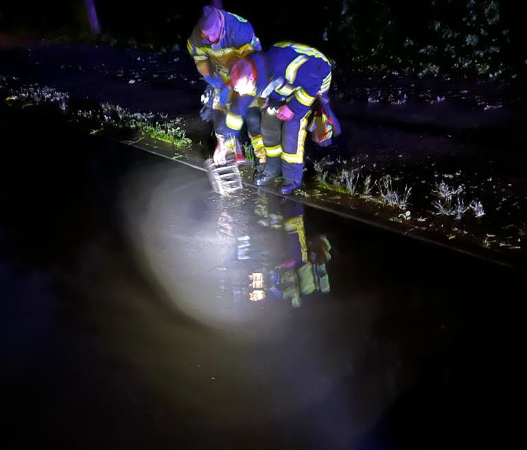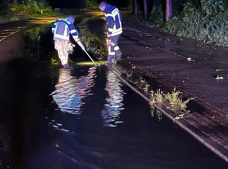 Auf einer Länge von etwa 80m Stand am Freitagabend die Konrad-Adenauer-Allee halbseitig unter Wasser. Starkregen und verstopfte Regenwasserabläufe ließen den Straßenverlauf in Höhe der Verbrauchermärkte binnen kürzester Zeit volllaufen. Einsatzkräfte vom Zug I der Ortsfeuerwehr Buxtehude machten sich auf den Weg und öffneten die Abläufe. Nach der Reinigung der Schmutzfangsiebe konnte das Wasser wieder uneingeschränkt ablaufen.