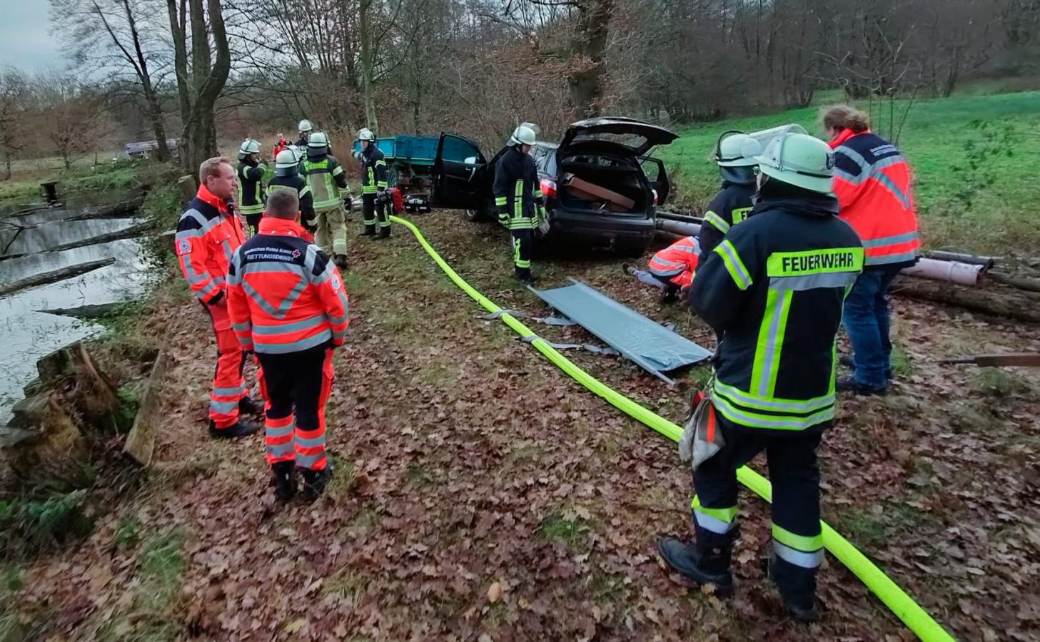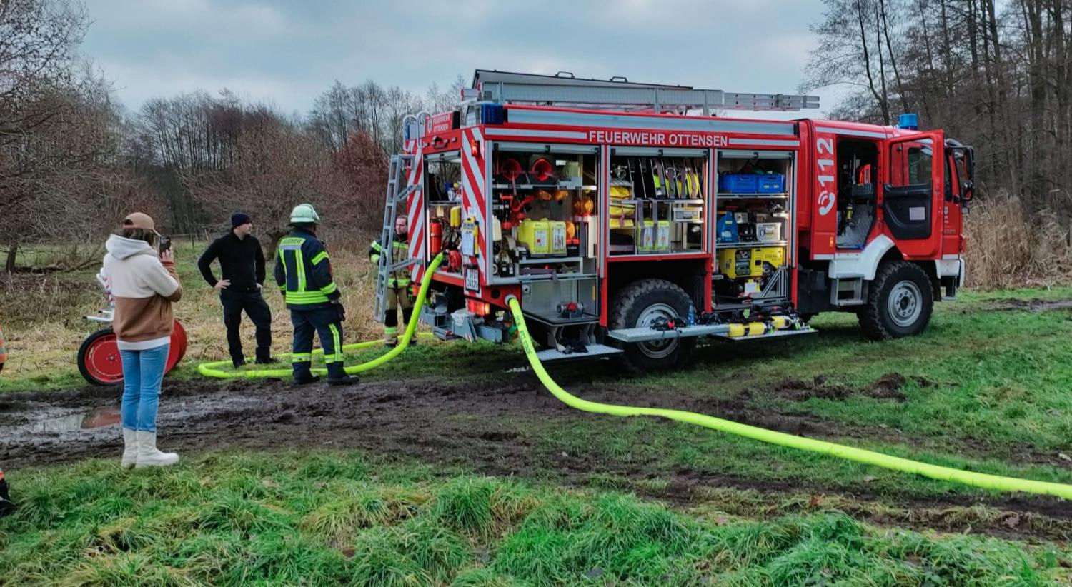 So lautete die Alarmmeldung für die Ortsfeuerwehr Ottensen am Sonntagvormittag. Eine Spaziergängerin hatte zwei leblose Personen im Estetal in einem PKW aufgefunden und den Rettungsdienst sowie die Feuerwehr alarmiert. Vor Ort bot sich den Einsatzkräften eine anspruchsvolle Lage, die es zu bewältigen galt. Einerseits mussten zwei Personen aus dem verschlossenen PKW befreit und medizinisch versorgt werden, zusätzlich stellten die Einsatzkräfte in einer in der Nähe befindlichen Hütte eine extreme Verrauchung fest. Zwei Trupps unter Atemschutz mussten sich gewaltsam Zugang zur Hütte verschaffen und fanden hier unter Nullsicht zwei weitere leblose Personen. Die aufgefundenen Verletzten mussten z. T. reanimiert werden.