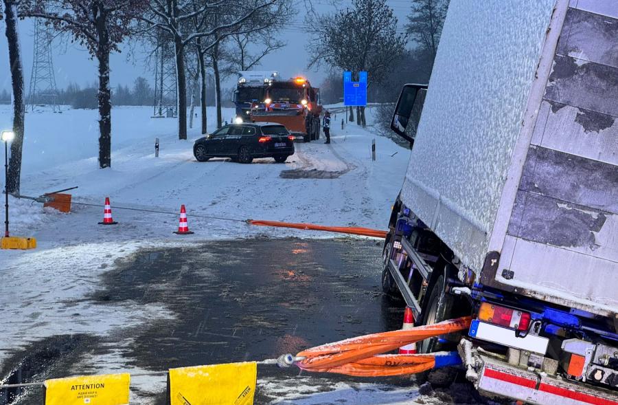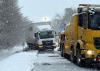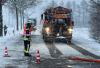 LkW rutscht auf schneeglatter Fahrbahn in den Seitenraum