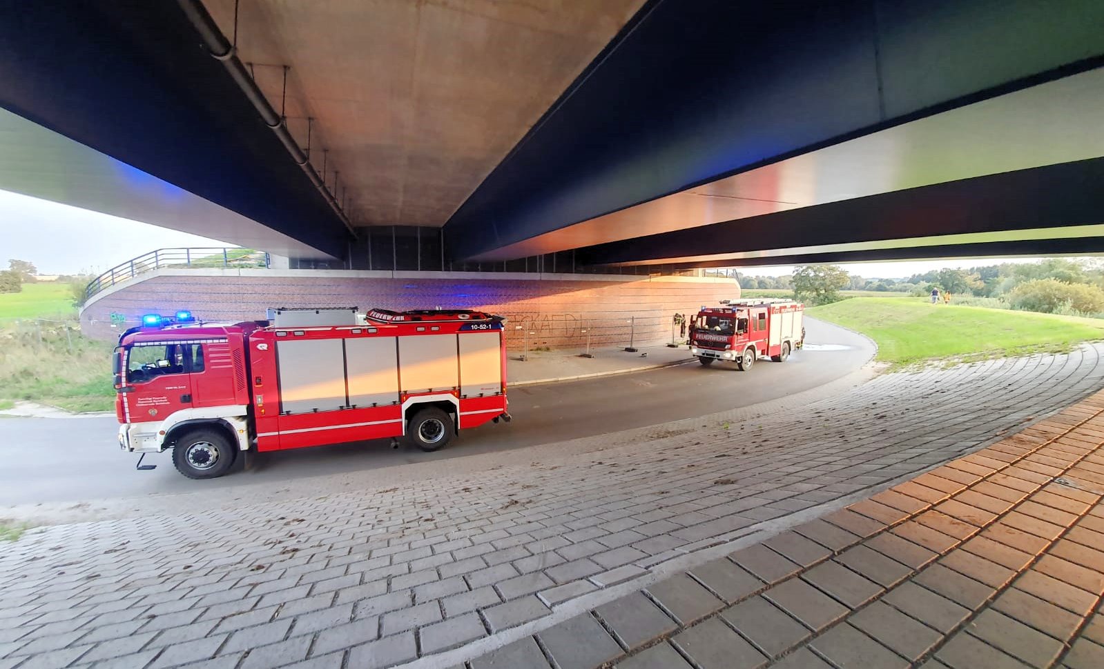 Zu einer Menschenrettung wurde der Zug I der Ortsfeuerwehr Buxtehude am frühen Sonntagabend in die Moorender Straße alarmiert. Unter der dortigen Autobahnbrücke hatte sich ein junger Mann in die Este begeben und den Halt unter den Füßen verloren. Laut Alarmdepesche sollte er sich bis zur Hüfte im Schlamm befinden.