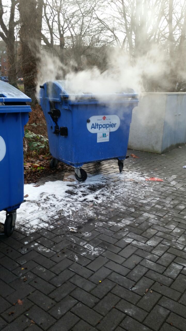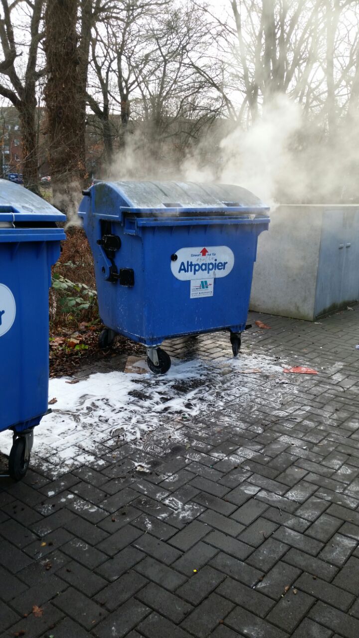 Zu einem brennenden Papiercontainer musste der Zug I der Ortsfeuerwehr Buxtehude am Freitagnachmittag in die Bleicherstraße ausrücken. Eine aufmerksame Arzthelferin aus dem danebenliegenden Gebäude hatte beim Eintreffen des Löschfahrzeugs bereits beherzt versucht mit einem Schaumlöscher die Flammen zu ersticken. Da der Müllcontainer allerdings abgeschlossen war, war dieser Versuch nicht sehr vielversprechend.