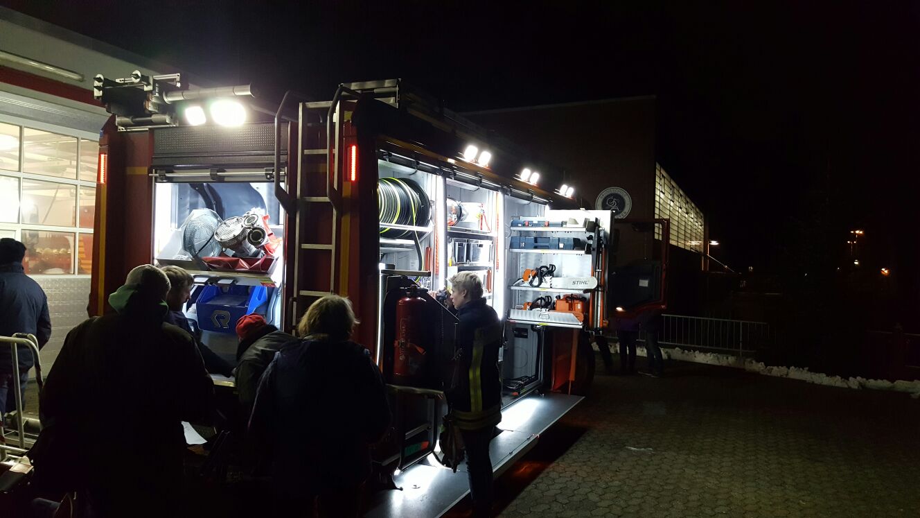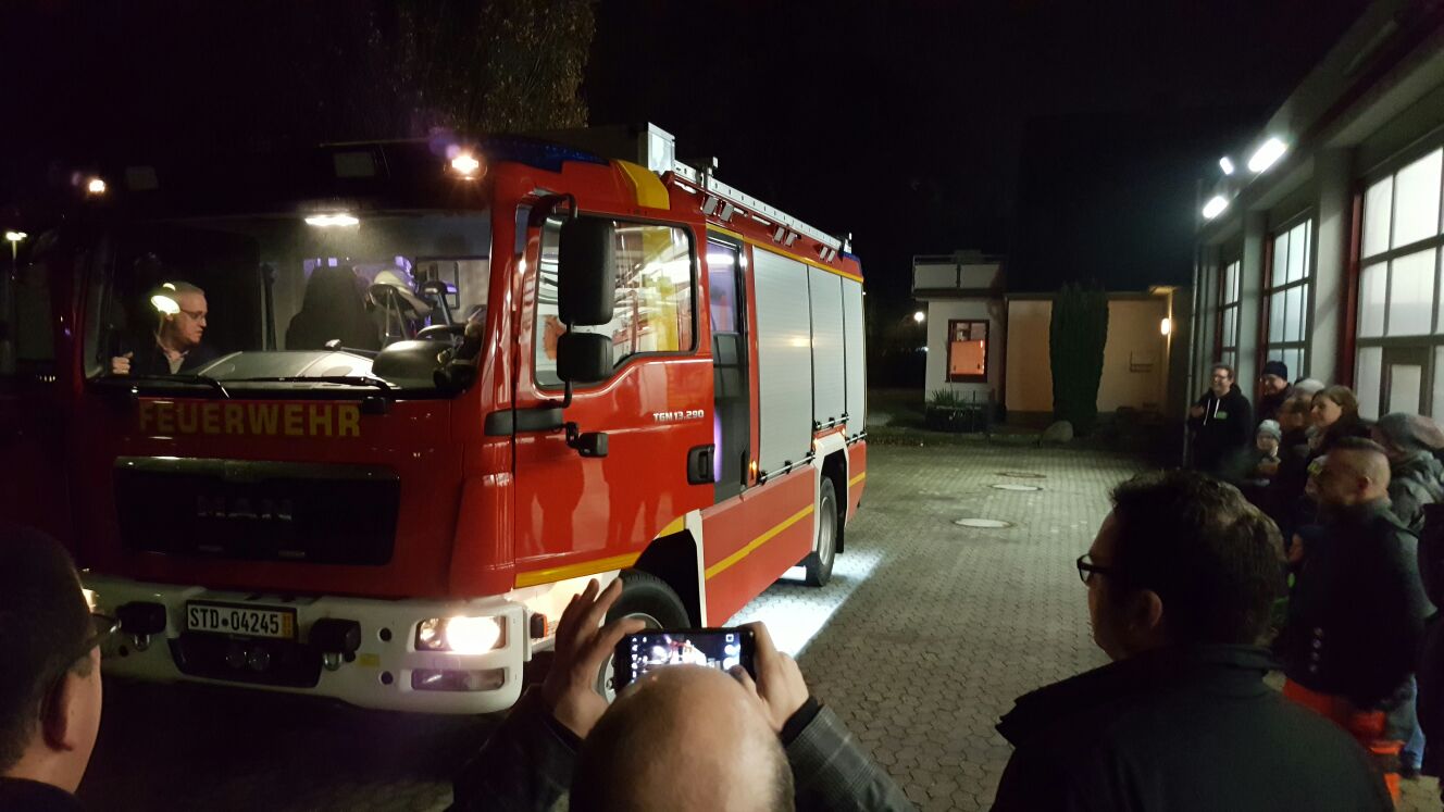Beim Eintreffen am Abend hatte sich bereits eine Gruppe "Schaulustiger" am Gerätehaus "Am Eichholz" versammelt, um den Neuling in Empfang zu nehmen.