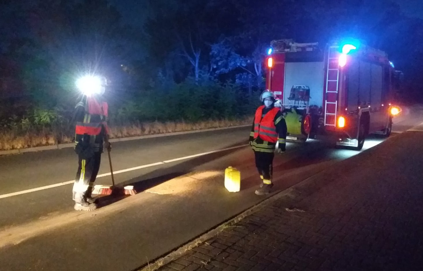 In Absprache mit der Buxtehuder Polizei streuten die alarmierten Feuerwehrkräfte die etwa 400m lange Verunreinigung auf acht Straßenverläufen ab.