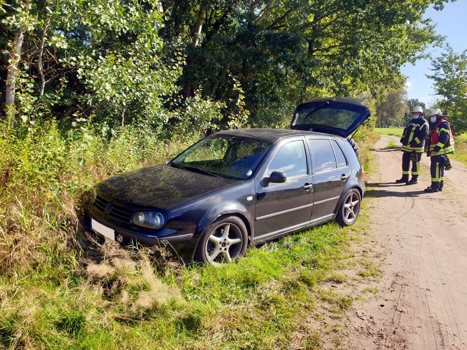 Einen etwas kuriosen Einsatz erlebten die Einsatzkräfte vom Zug II der Ortsfeuerwehr Buxtehude am Dienstagmittag auf und an der Bundesstraße 73. Eine Ölspur auf der Fahrbahn in Richtung Hamburg war gemeldet worden. Diese zog sich über die Auf- und Abfahrt Moisburger Landstraße bis zur Tankstelle hin. Von dort ging eine Spur zurück zur Auffahrt wo der PKW augenscheinlich von der Straße abgefahren war und sich auf dem, neben der Fahrbahn gelegenen, Feldweg die Ölwanne an einem klappbaren Poller gänzlich aufriss. Wenige Meter weiter blieb der Wagen liegen. Beim Eintreffen der Feuerwehrkräfte konnte der Fahrer nicht mehr angetroffen werden.