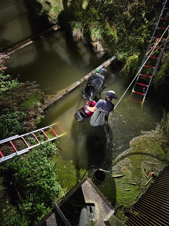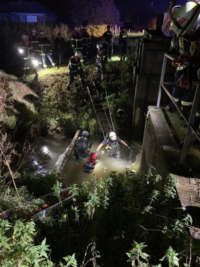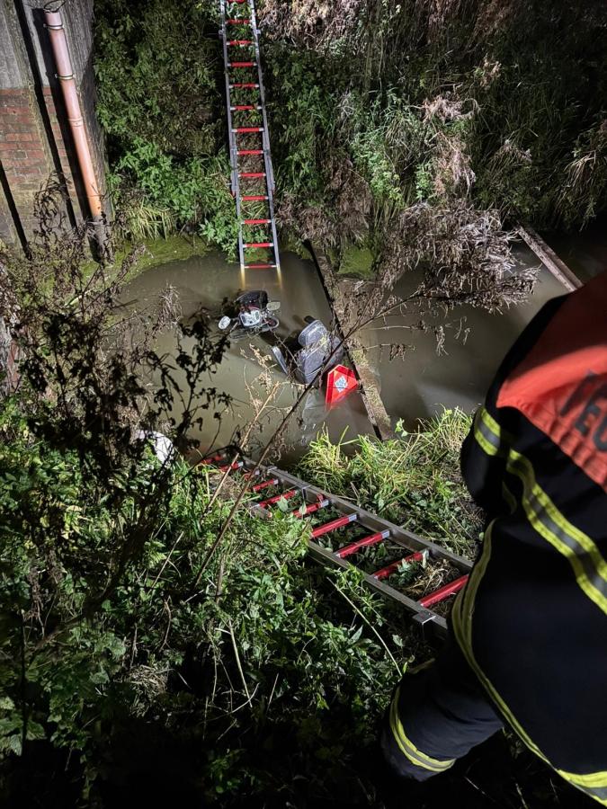 Aus ungeklärter Ursache war ein älterer Mann mit seinem Elektro-Scooter (Seniorenmobil) von der Fahrbahn abgekommen und mehrere Meter tief in einen Graben mit angrenzendem Schöpfwerk gestürzt. Aus eigener Kraft konnte er sich aus seiner bedrohlichen Lage nicht befreien. Ein aufmerksamer Anwohner hörte die leisen Hilferufe und wählte den Notruf. Durch die Einsatzkräfte konnte die Person unverletzt mit leichter Unterkühlung aus ihrer Lage gerettet und bis zur Übernahme durch den Rettungsdienst versorgt werden. Im Anschluss wurde das Fahrzeug gesichert und bei der Bergung durch ein Abschleppunternehmen unterstützt. Mit im Einsatz waren der ELW der Feuerwehr Jork, der Rettungsdienst sowie die Polizei. Nach knapp 2 Stunden konnte der Einsatz beendet werden.