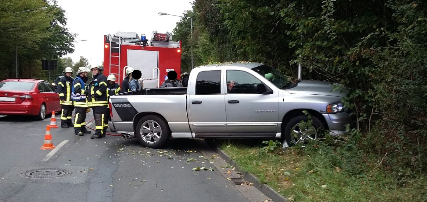 Der Fahrer eines PickUps war in Richtung Innenstadt fahrend in Höhe der Estebrücke mit seinem Fahrzeug ins Schleudern gekommen und dabei über alle Spuren in den linken Seitenraum gerast. Dort fällte der PickUp schließlich eine Straßenlaterne und kam auf dieser zum Stehen. Das angerückte Abschleppunternehmen konnte das Fahrzeug nicht aus dem Seitenraum ziehen, so dass die Feuerwehr zur Hilfe hinzugerufen wurde.