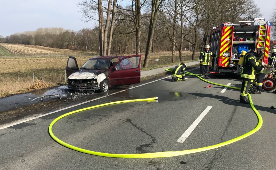 Die Ortsfeuerwehren Ovelgönne / Ketzendorf, Immenbeck und Buxtehude (Zug I) wurden am Freitagmittag zu einem Einsatz auf die Bundesstraße 73 alarmiert. Der Grund hierfür war ein brennender PKW kurz vorm Abzweiger zur B3.