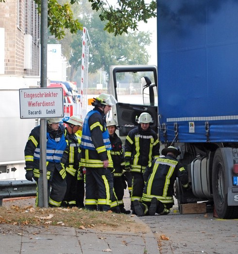 Aufgrund der Lage der Toten konnten die Hebekissen der Ortsfeuerwehr nicht zum Einsatz kommen, sagte Stadtbrandmeister Horst Meyer. Mit Hilfe eines Radladers eines Buxtehuder Unternehmens musste der Sattelzug weggezogen werden. Der Lkw-Fahrer blieb – bis auf einen Schock – unverletzt. Feuerwehrleute und Rettungsassistenten mussten die Tote bergen, die Unfallstelle im Industriegebiet wurde weiträumig abgesperrt.