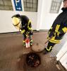 Ein Kleinstfeuer beschäftigte die Einsatzkräfte vom Zug I der Ortsfeuerwehr Buxtehude am Dienstagmorgen in der Bahnhofstraße. In der Unterführung beim Kino qualmte es aus einem Kanaldeckel.