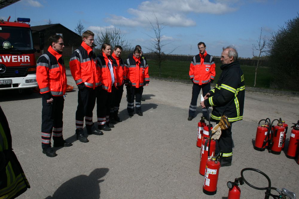 Begonnen hatte die Veranstaltung am Samstagmorgen mit einer Präsentation über Mittel und Arbeit der Feuerwehren. Nach einem kleinen Mittagessen ging es zur praktischen Ausbildung auf den Übungshof, wo vier Stationen aufgebaut waren.