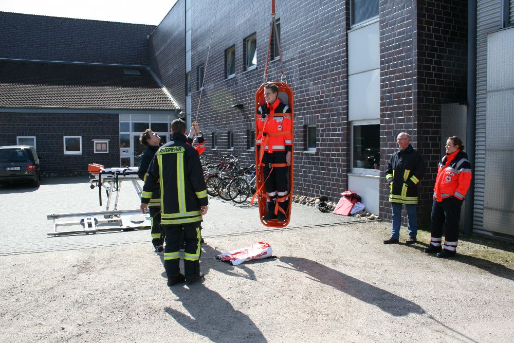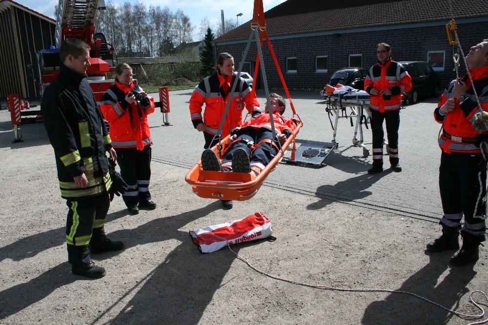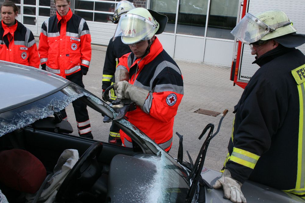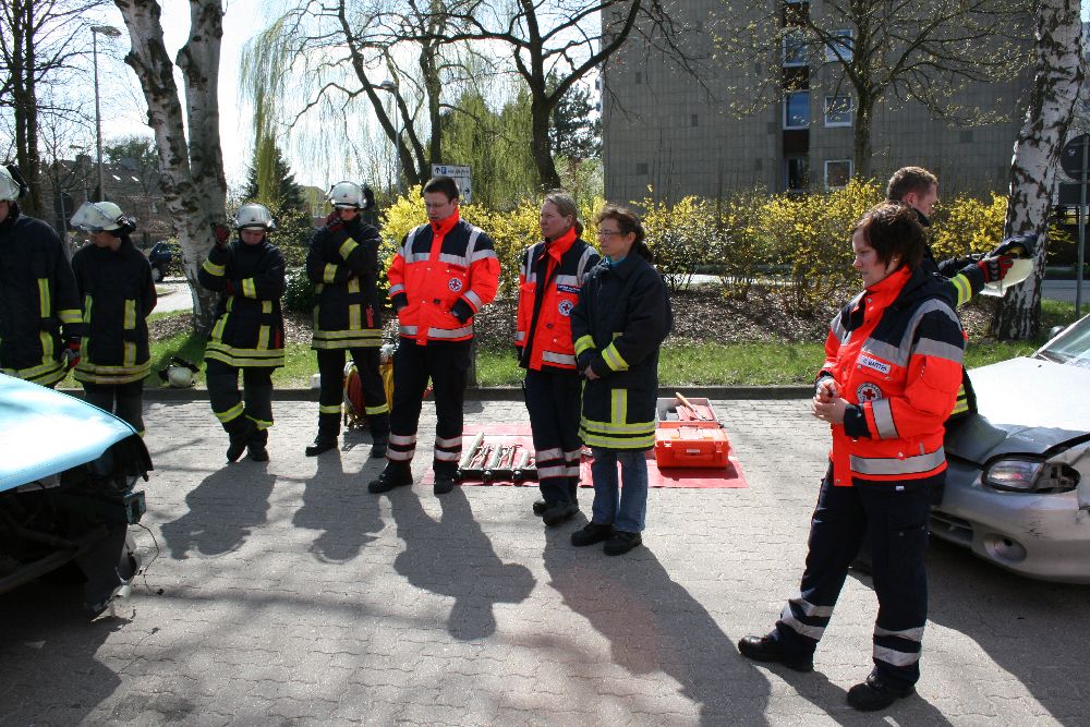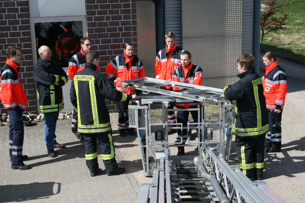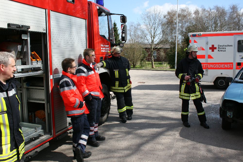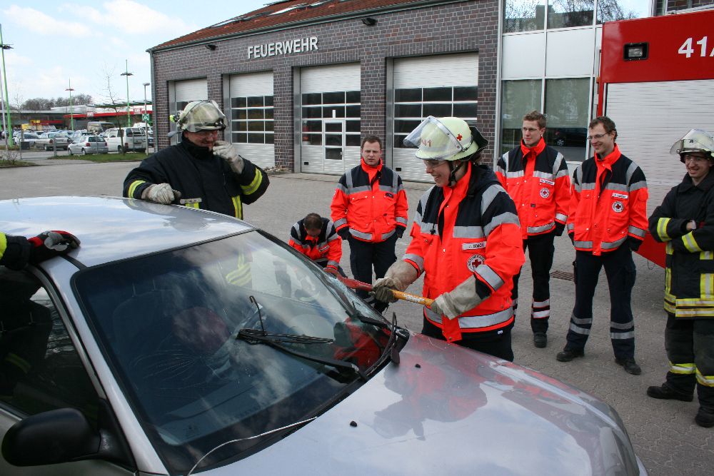 Bei einer Ausbildungsveranstaltung von Feuerwehr und Rettungsdienst am Buxtehuder Feuerwehrhaus im Westmoor wurde am Samstag die Zusammenarbeit der beiden Hilfsorganisationen vertieft. Ziel der Veranstaltung war es, den jungen Einsatzkräften vom Roten Kreuz einen Einblick in die Arbeit der Feuerwehr zu geben.