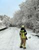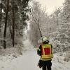 Ein größerer Ast drohte am Samstagnachmittag durch zu hohe Schneelast auf einen Wanderweg hinter der Wohnbebauung Am Klöterbusch zu stürzen.