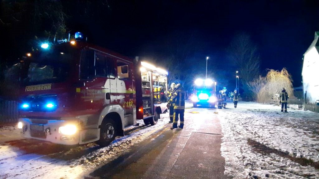 An der Einsatzstelle angekommen, wurde der Kamin kontrolliert. Ein Trupp ging derweil unter Atemschutz mit Wärmebildkamera und einem vorbereiteten Löschangriff an der Revisionsklappe im Keller in Bereitstellung.