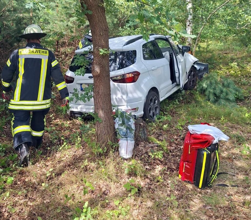Beim Eintreffen der Feuerwehrkräfte hatte der Rettungsdienst die Beifahrerin bereits befreien können. Auch der Fahrer war nicht eingeklemmt. Um für ihn die notwendige, schonende Rettung mittels Schaufeltrage möglich zu machen, mussten im Türbereich einige kleine Bäume und Sträucher entfernt werden.