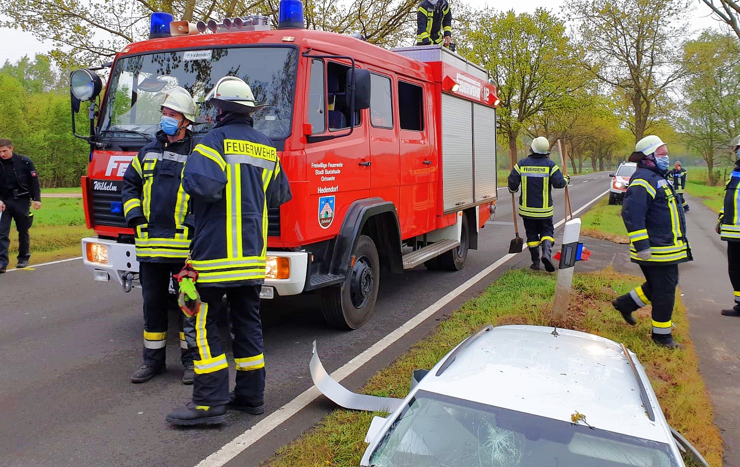 Die gerade auf dem Rückweg vom letzten Einsatz befindliche Ortsfeuerwehr Hedendorf wurde beim Ausfahren aus einem Wirtschaftsweg auf die Jorker Straße bereits winkend von Augenzeugen an die Unfallstelle heran gewunken. Die Einsatzkräfte übernahmen die Erstversorgung des Unfallopfers bis zum Eintreffen des Rettungsdienstes.
