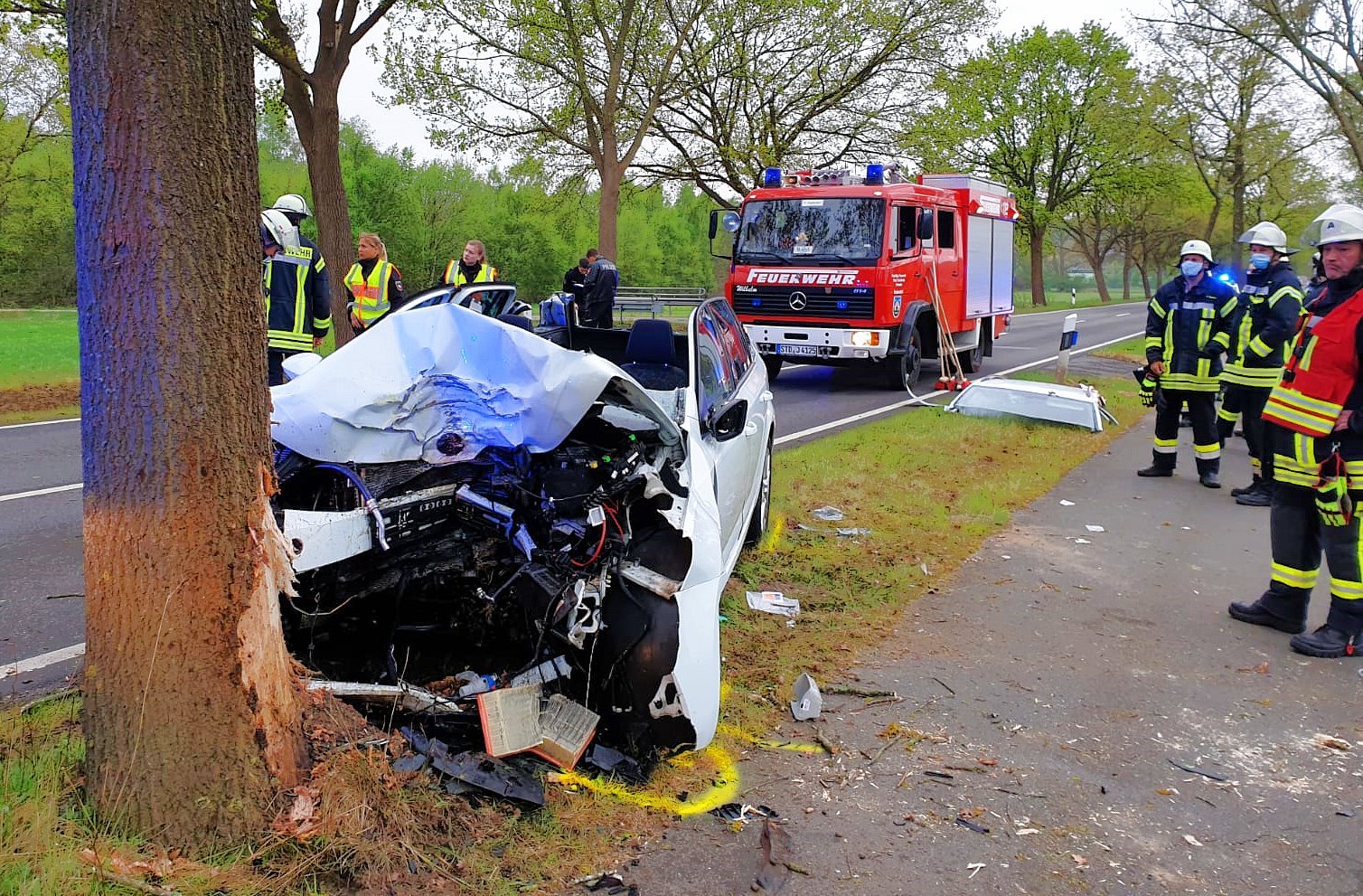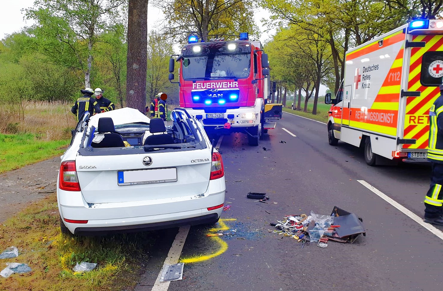 Ein schwerer Verkehrsunfall ereignete sich am Mittwochmorgen auf der Jorker Straße. Ein PKW war auf gerader Strecke frontal mit einem Baum kollidiert. Der Fahrer wurde bei dem Unfall schwer verletzt.
