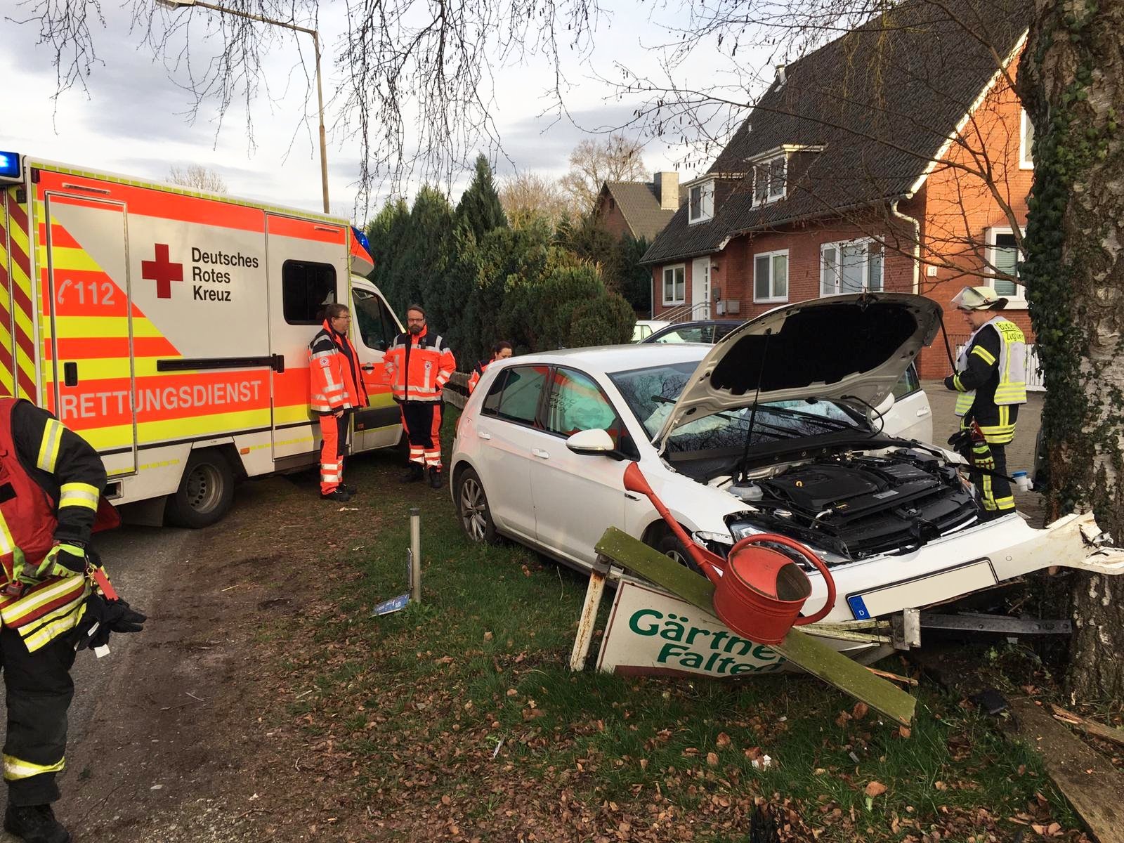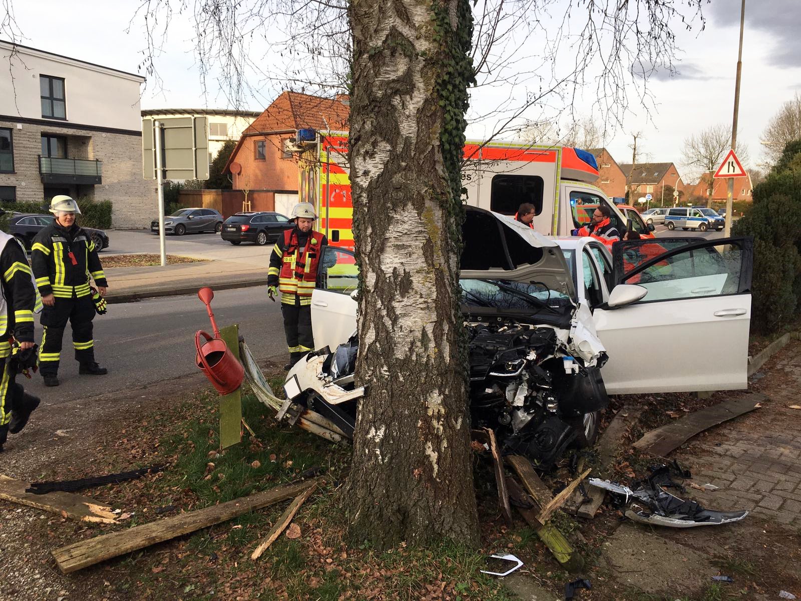 Kurz hinter der Einmündung zum Kälberweideweg kam am Mittwochnachmittag ein aus Richtung Rübke kommender PKW nach links von der Fahrbahn ab. Der Wagen prallte im Seitenraum frontal gegen einen Baum. Die alarmierten Einsatzkräfte vom Zug I der Ortsfeuerwehr Buxtehude rückten daraufhin aus. Währenddessen konnte ein zufällig anwesender Anwohner den Autofahrer aus seinem schwer beschädigten Fahrzeug befreien. Die Tür klemmte. Der Fahrer kam offenbar trotzdem mit dem Schrecken davon.